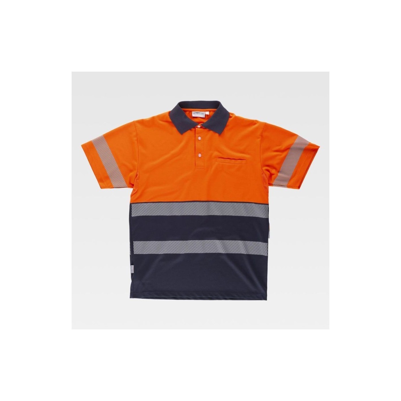 Polo bicolore à manches courtes en polyester micropiqué haute visibilité avec détails haute visibilité et réfléchissants. Il est doté d'aisselles en mesh pour une meilleure respirabilité, d'un col classique avec une patte à trois boutons et d'une poche poitrine. Idéal pour les environnements de travail qui nécessitent sécurité et confort.