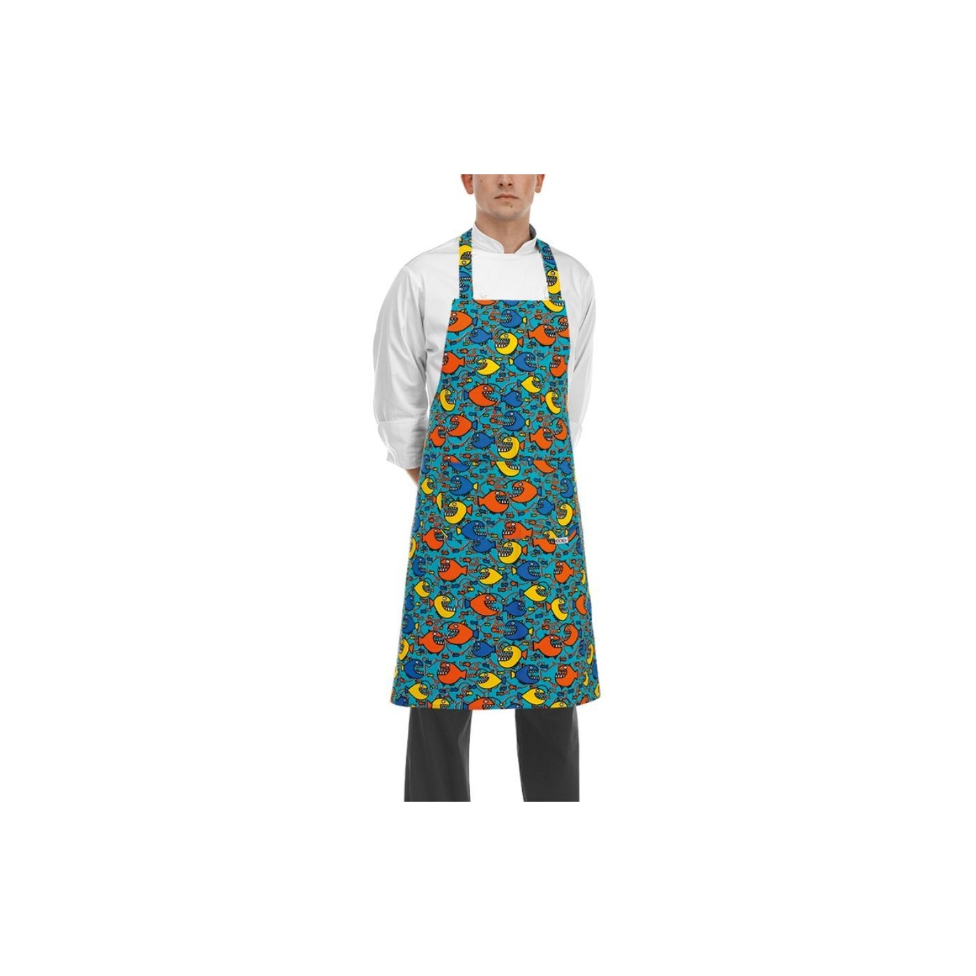 Tablier de cuisine avec bavette imprimée SHARK Egochef, unisexe, 90x70 cm, 100% coton, avec une double poche centrale pratique.