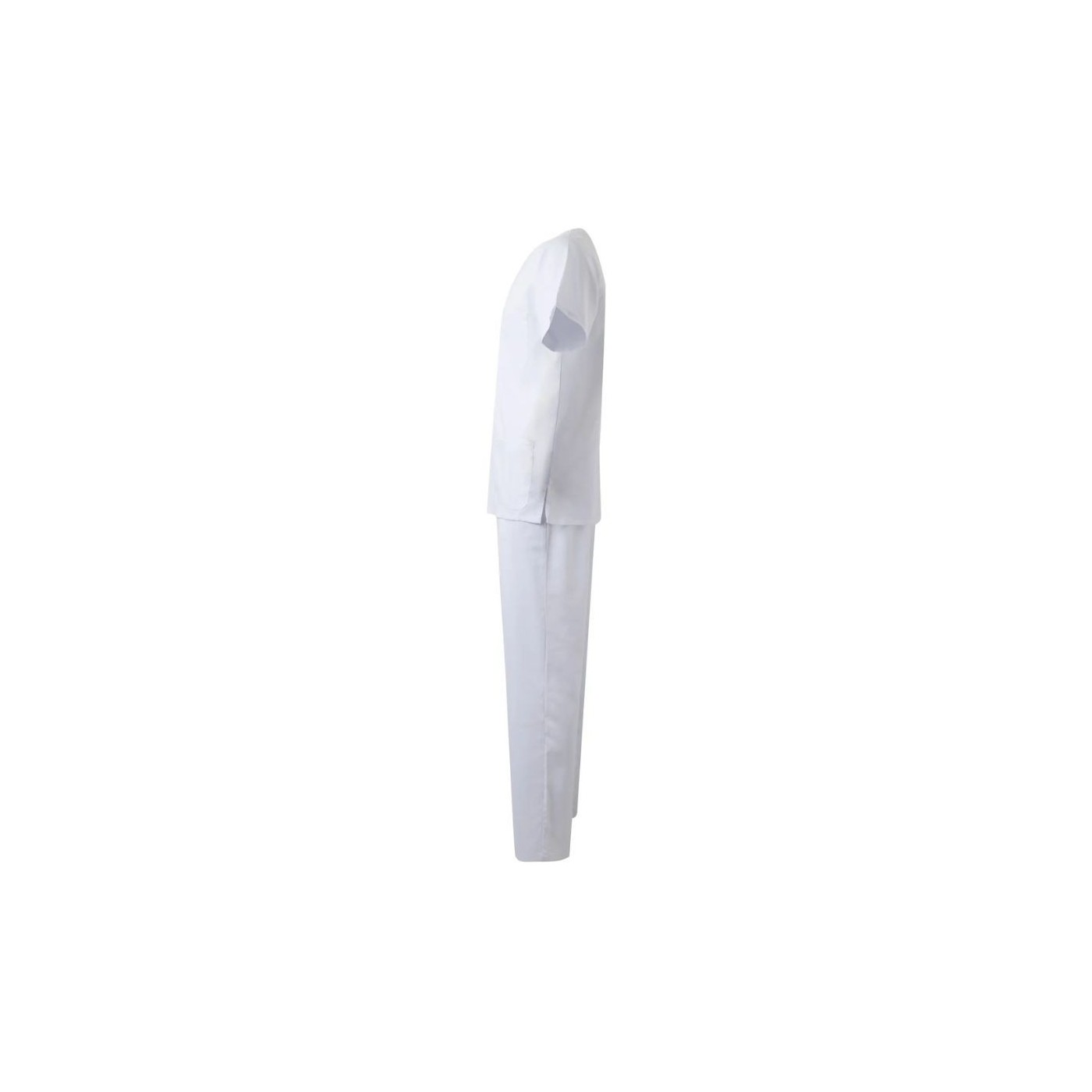 Le pyjama sanitaire Velilla 800, fabriqué en sergé, offre confort et résistance. Avec une tunique à col en V, des manches raglan et plusieurs poches, ainsi qu'un pantalon avec taille élastique et poches françaises, il est idéal pour les professionnels de la santé et du nettoyage. Permet l'impression de logo et est facile à entretenir.