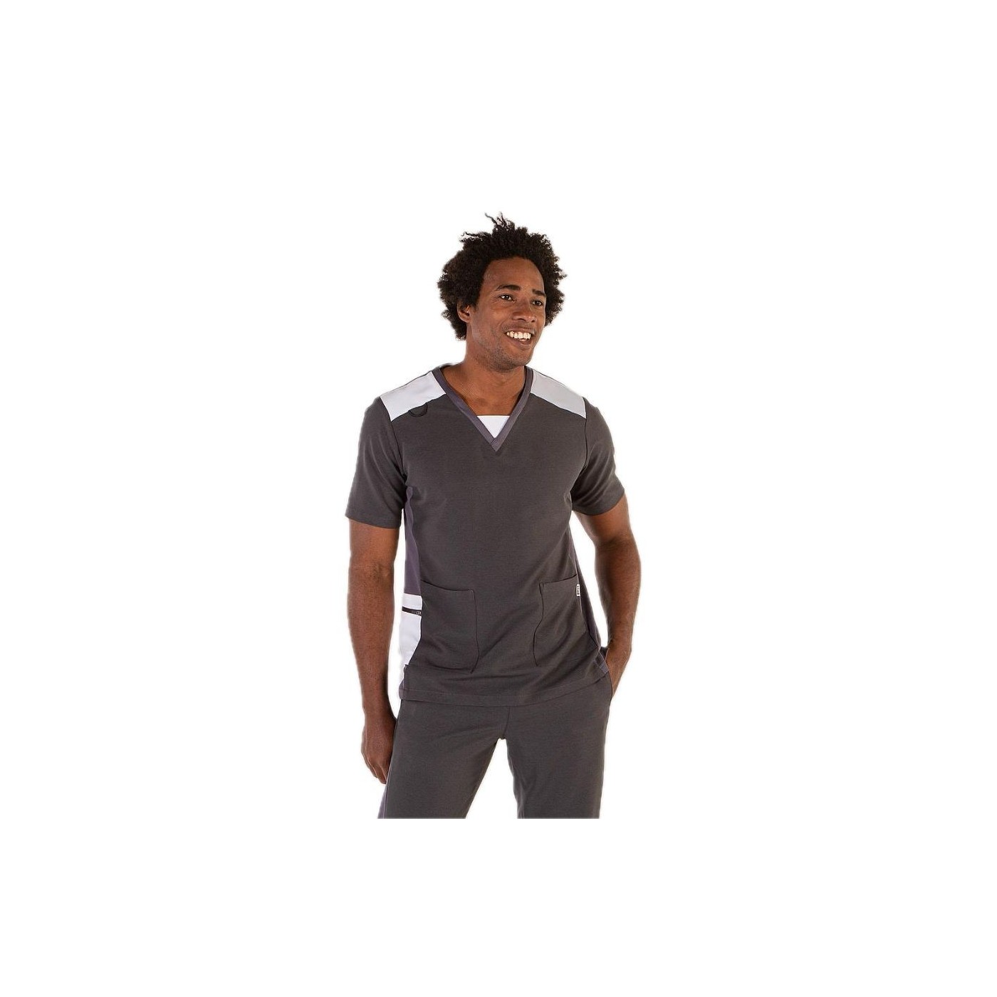 La Blouse de travail Homme FIDEL est confectionnée en MICROFIBRE 360, offrant une grande élasticité, respirabilité et confort. Avec des détails en tissu AEROSILVER, des poches pratiques et un design semi-ajusté, elle est idéale pour les professionnels de la santé qui recherchent style et confort dans leur uniforme.
