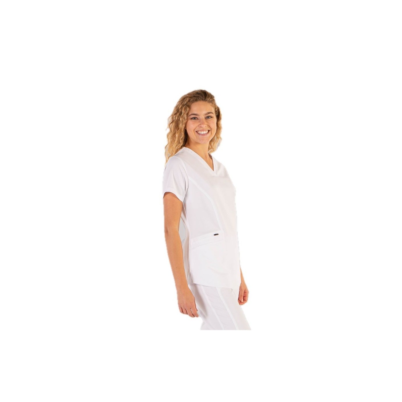 La Blouse Médicale OLAYA Gary's est conçue pour offrir confort et élégance aux professionnels de la santé. Confectionnée en EXTRAFIBER (93% Polyester et 7% Élasthanne), cette blouse à manches courtes est idéale pour les longues journées de travail, offrant résistance, respirabilité et douceur au toucher. Son col en V et ses coutures princesse et pinces assurent un ajustement parfait et un look professionnel.