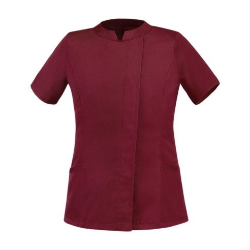 Veste à manches courtes pour l'hôtellerie et les services, coupe cintrée pour femme. Clous métalliques cachés sans contact avec la peau.