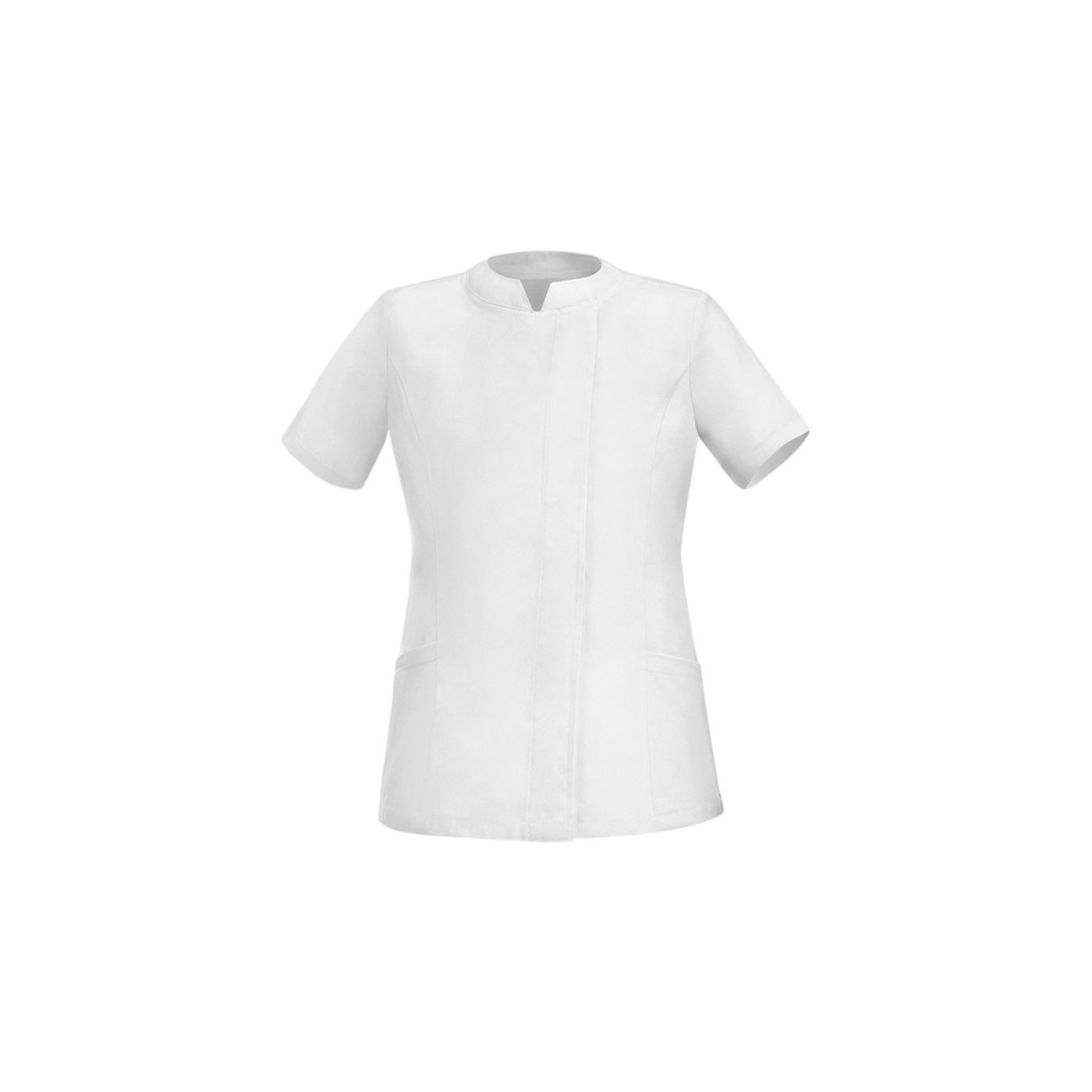 Veste à manches courtes pour l'hôtellerie et les services, coupe cintrée pour femme. Clous métalliques cachés sans contact avec la peau.