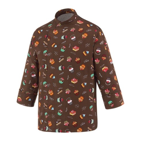 Veste de Cuisine Fantasy Sweets Egochef, unisexe, fabriquée en 100% coton, avec manches longues, poche sur la manche, système de ventilation Air Plus dans le dos et fermeture à boutons-pression dissimulés.