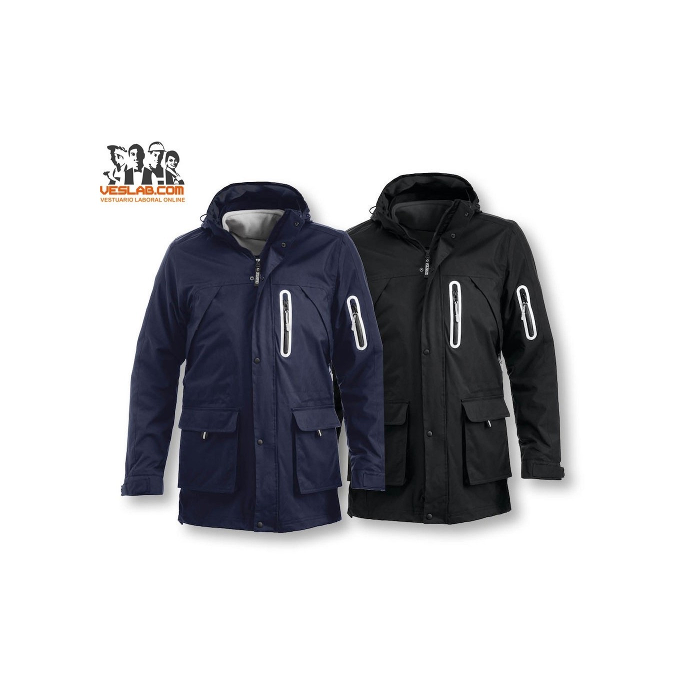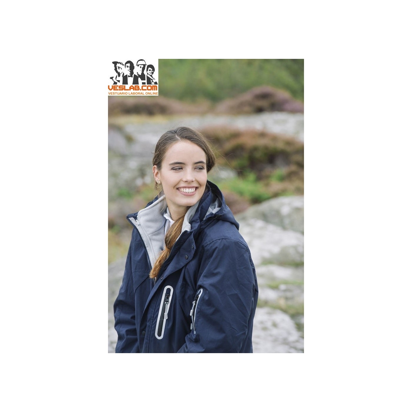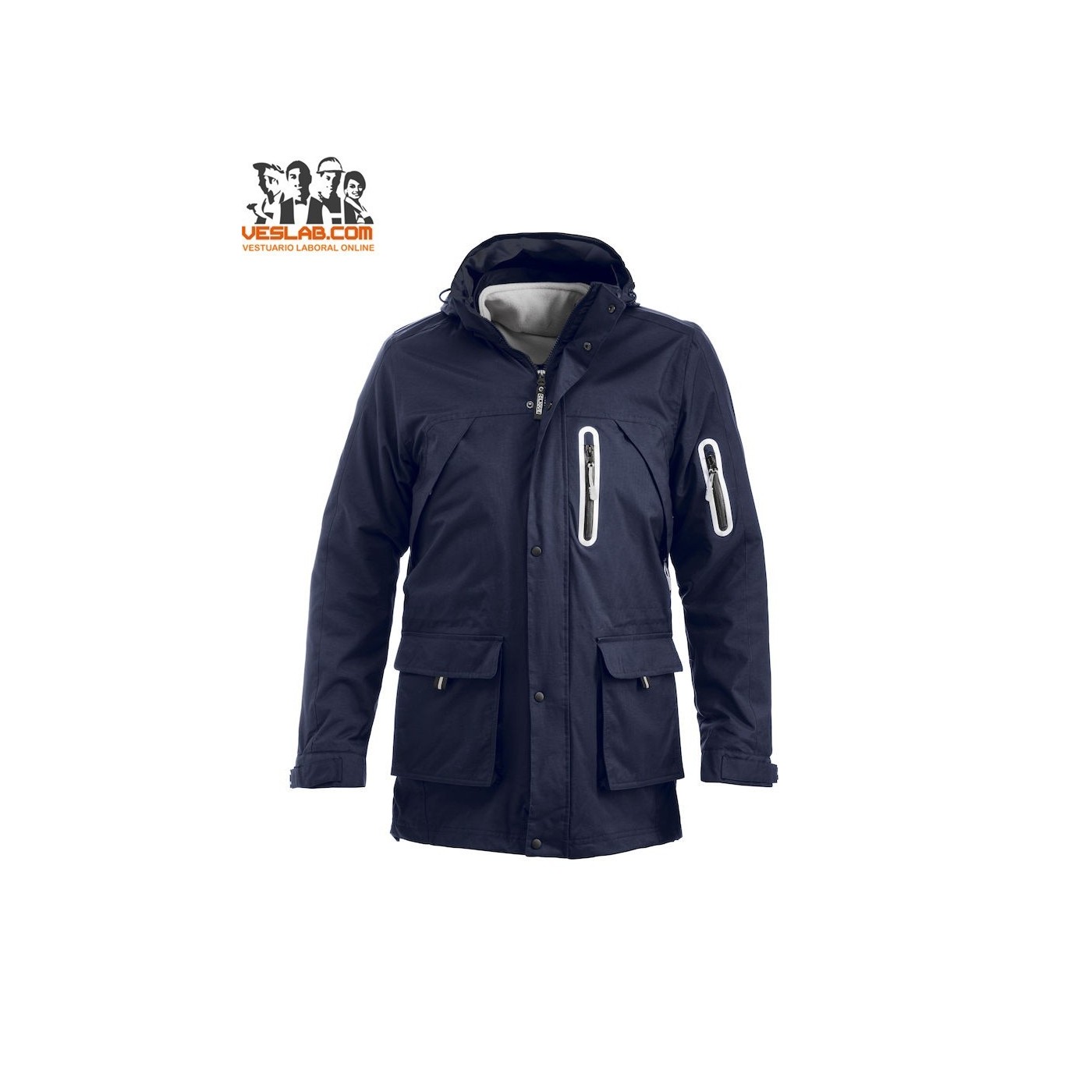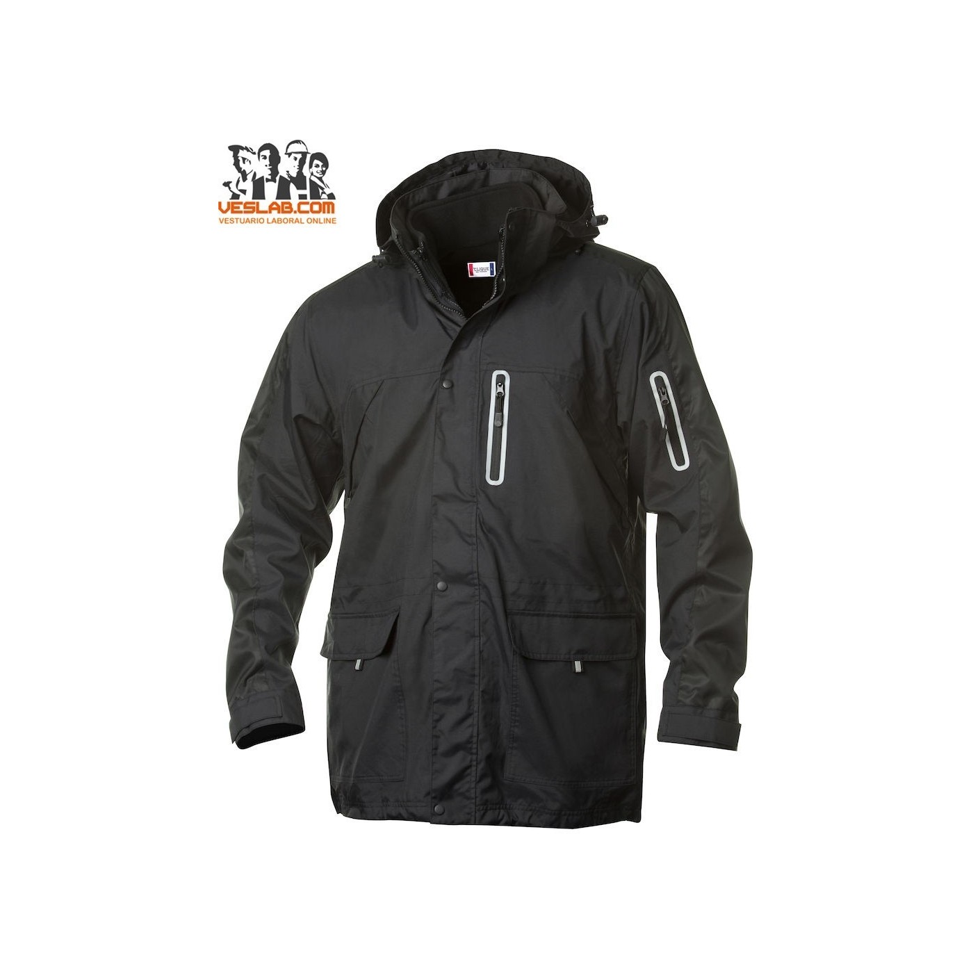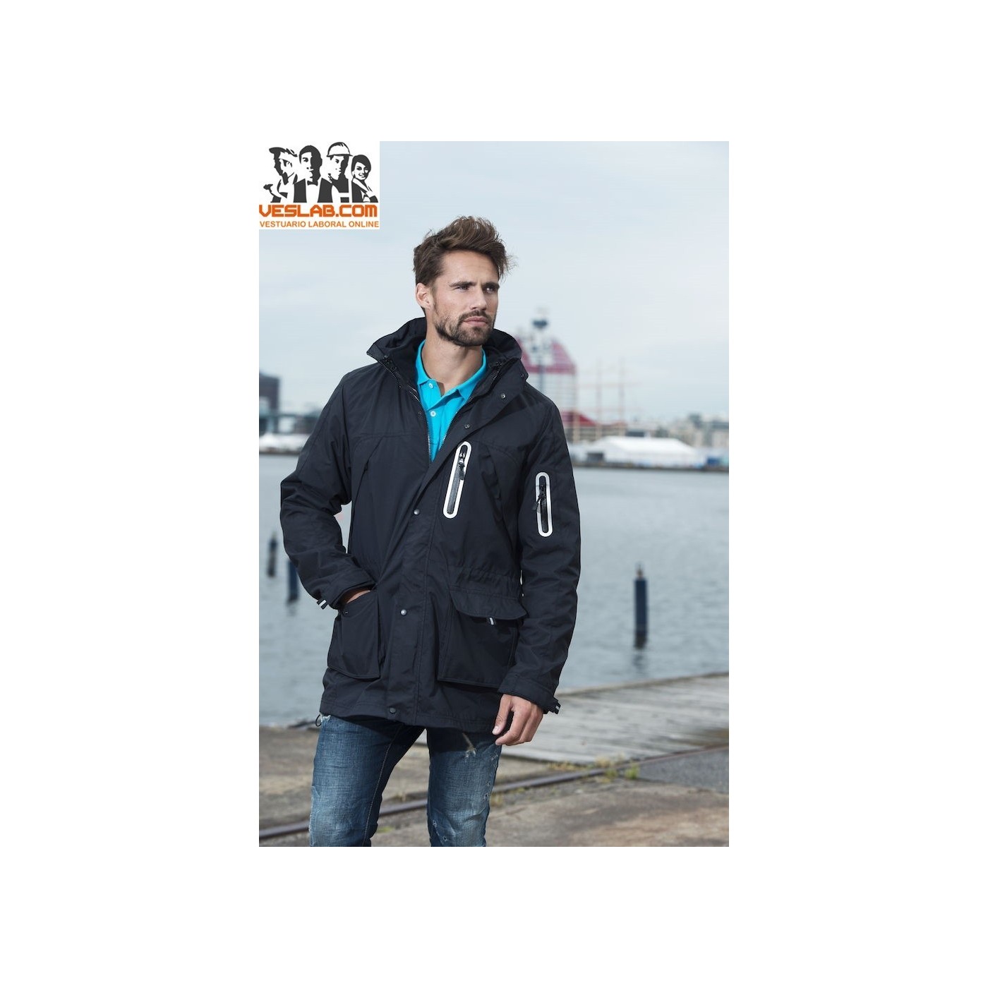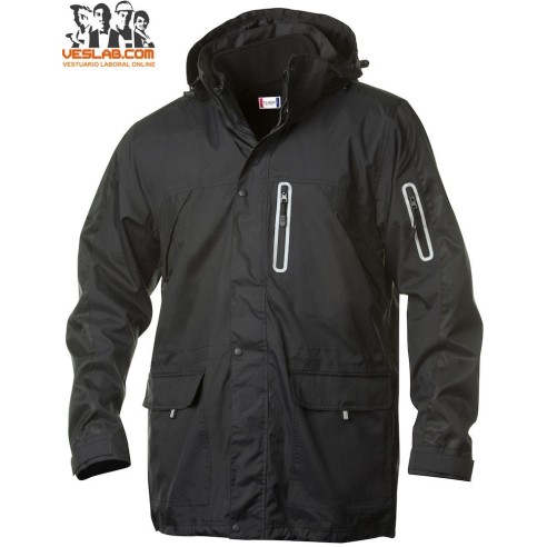 Veste moderne en nylon 3-en-1 avec poches pratiques et porte-cartes. Polar interne amovible à transporter séparément. Fermeture à glissière YKK avant en veste et polaire.