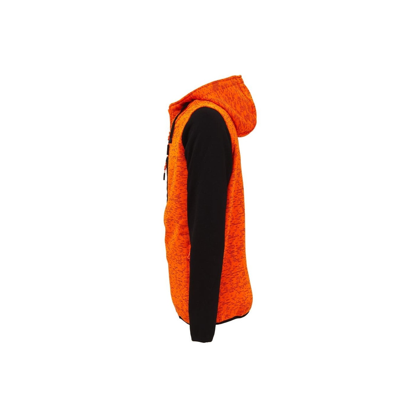 La composition du sweat est 100% polyester, avec un grammage de 310 gr/m², ce qui garantit durabilité et résistance à l'usure. Il est disponible en trois couleurs éclatantes : jaune fluo, orange fluo et noir.