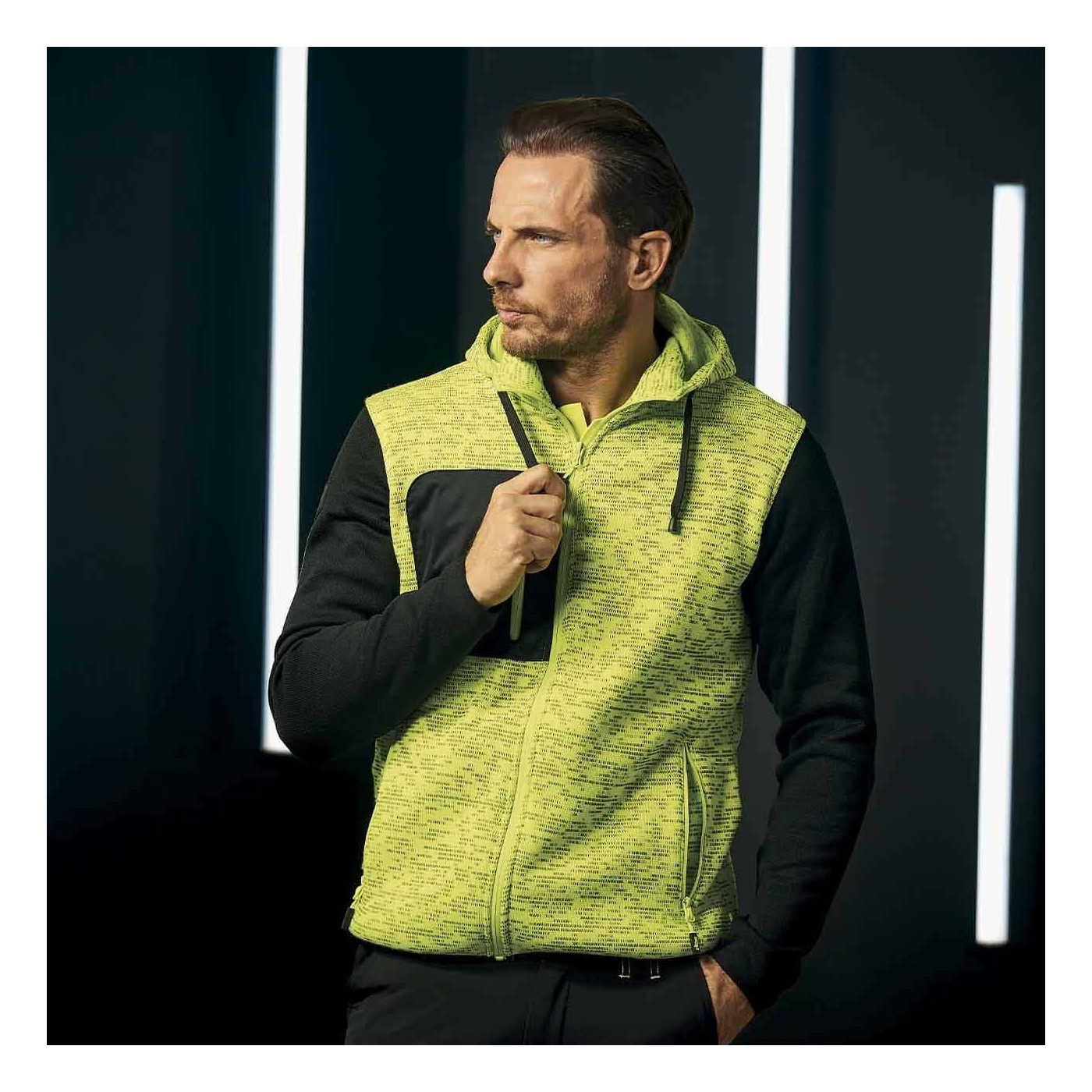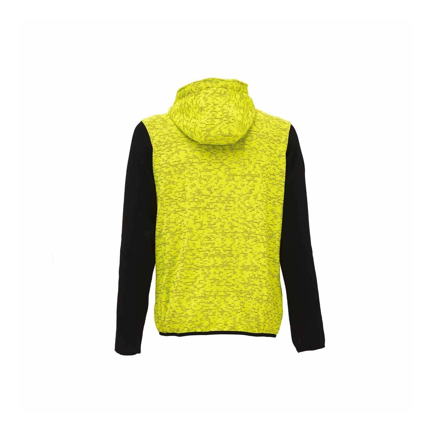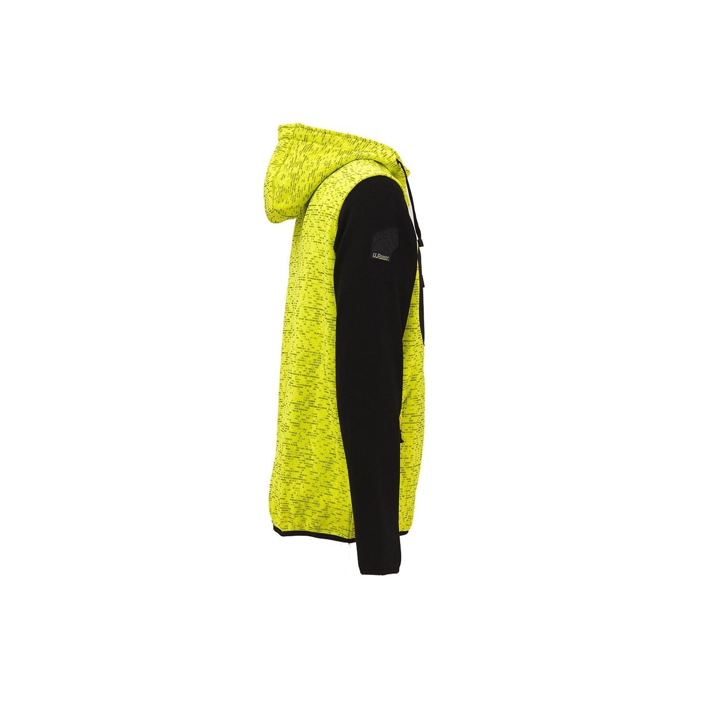 La composition du sweat est 100% polyester, avec un grammage de 310 gr/m², ce qui garantit durabilité et résistance à l'usure. Il est disponible en trois couleurs éclatantes : jaune fluo, orange fluo et noir.
