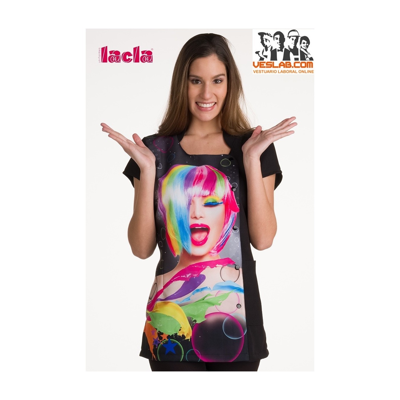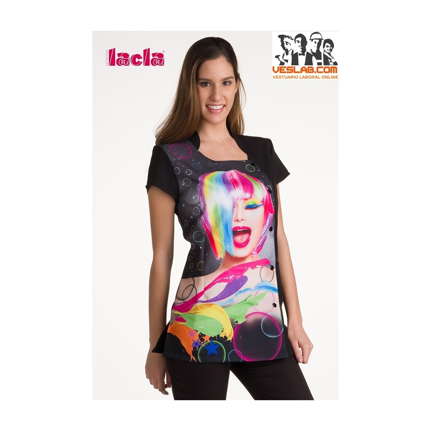 Veste à manches japonaise avec ton intérieur vivant. avec clip de poitrine. Cou de Mao 1 empiècement boutonné boutonné de boutons de couleur. poches à motifs irrégulières. Dos avec pinces arrière avec des niveaux pour la taille régulière. ouvertures latérales.