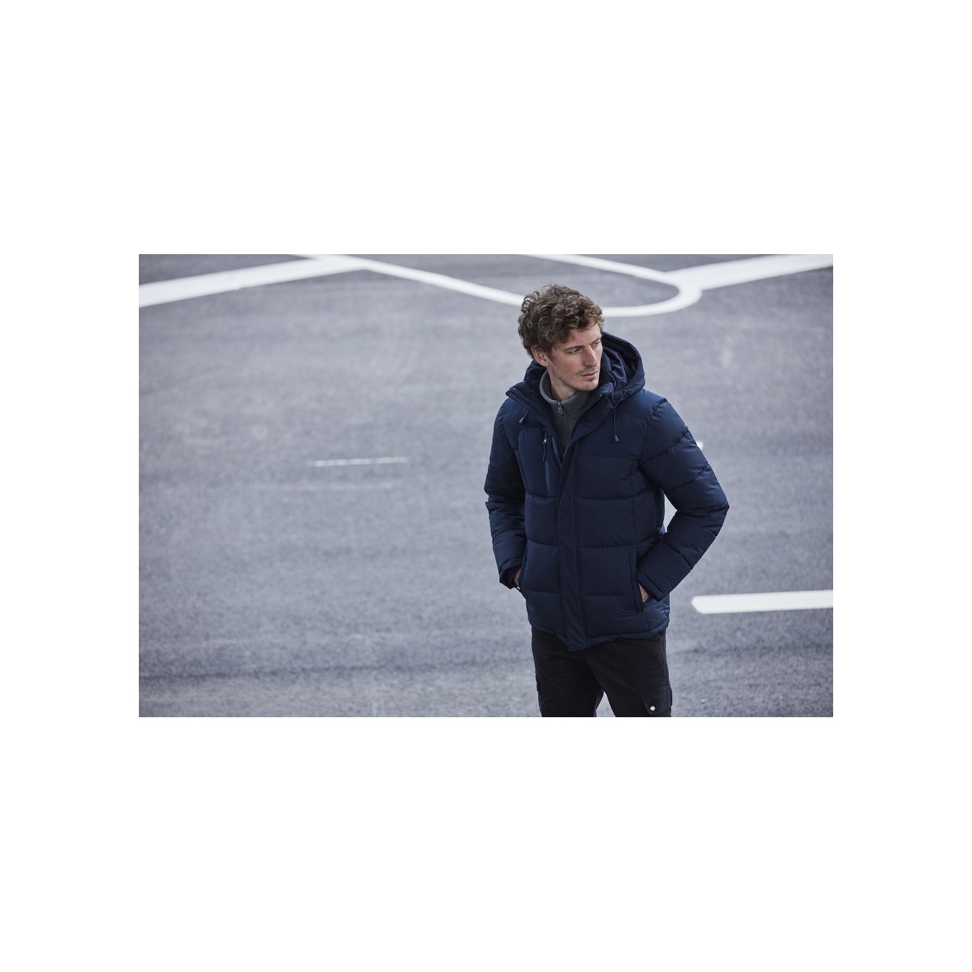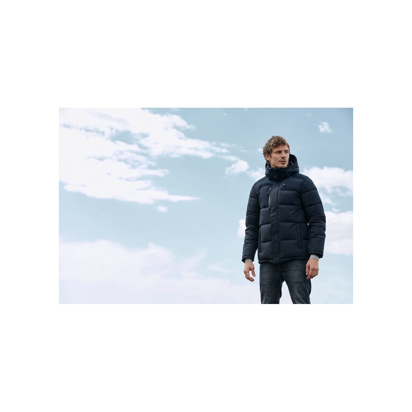 Veste matelassée très chaude. Fermeture à glissière SBS imperméable sur la poitrine et les poches avant. Capuche amovible et réglable. 2 grandes poches intérieures avec filet. Cordon de taille Poignets côtelés à l'intérieur 2x2. Fermeture à glissière pour la broderie.