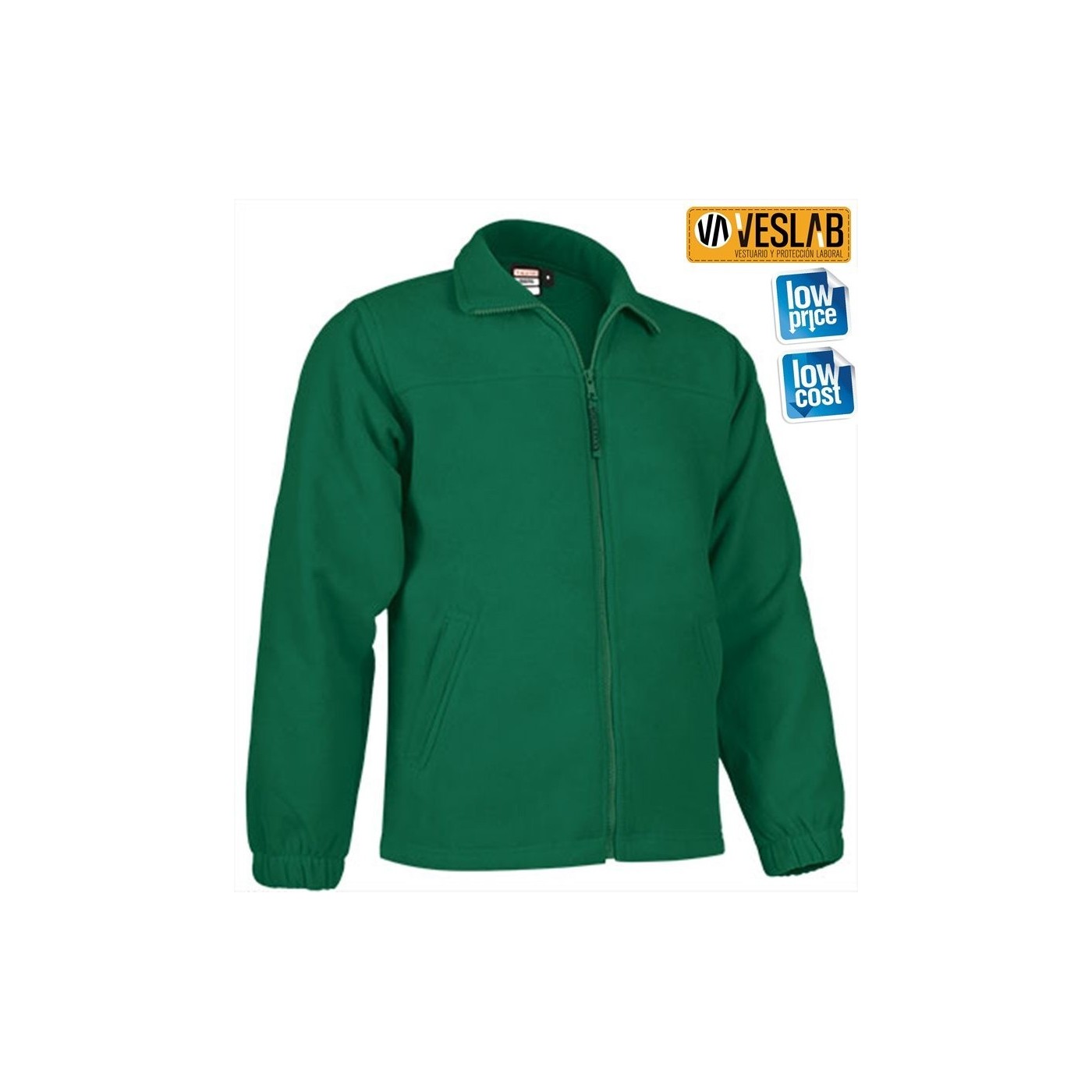 Veste en tissu anti-pelage micropolaire. Col haut double épaisseur avec fermeture à glissière centrale complète, coutures renforcées aux épaules et renfort en demi-cercle à l'arrière du cou. Comprend deux poches avant avec zip invisible sous la patte de boutonnage.