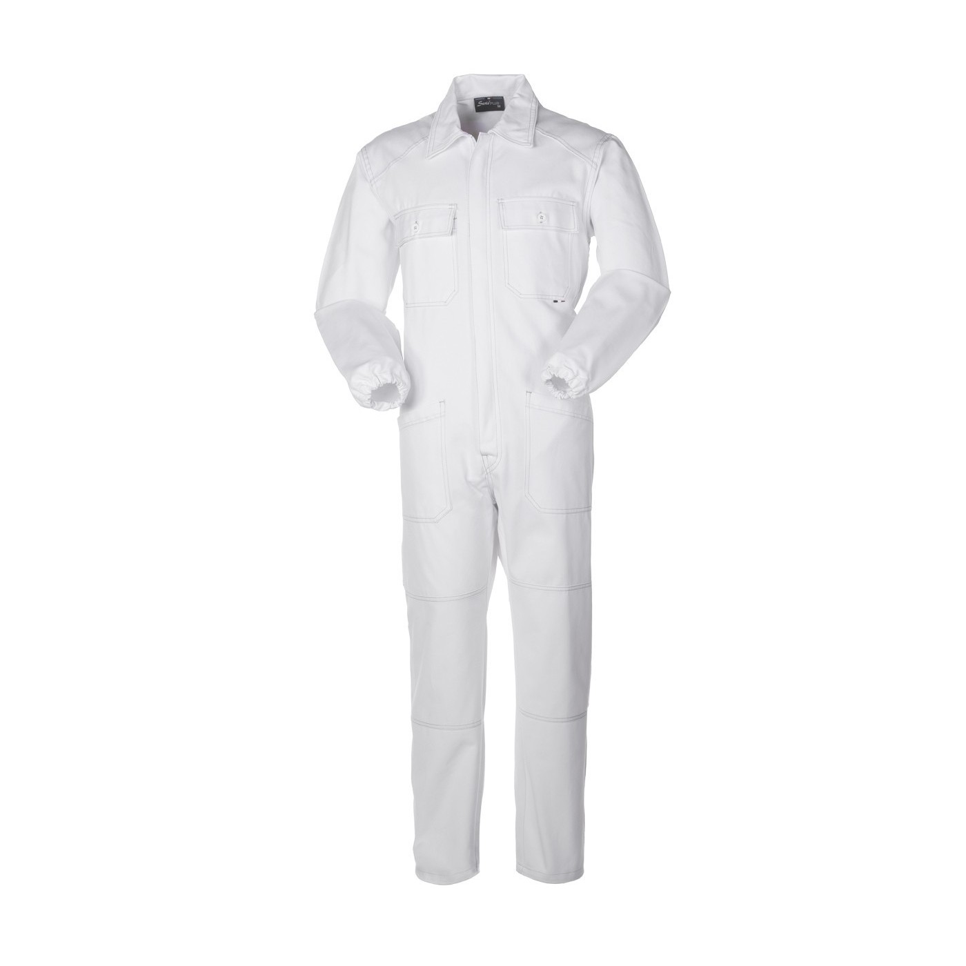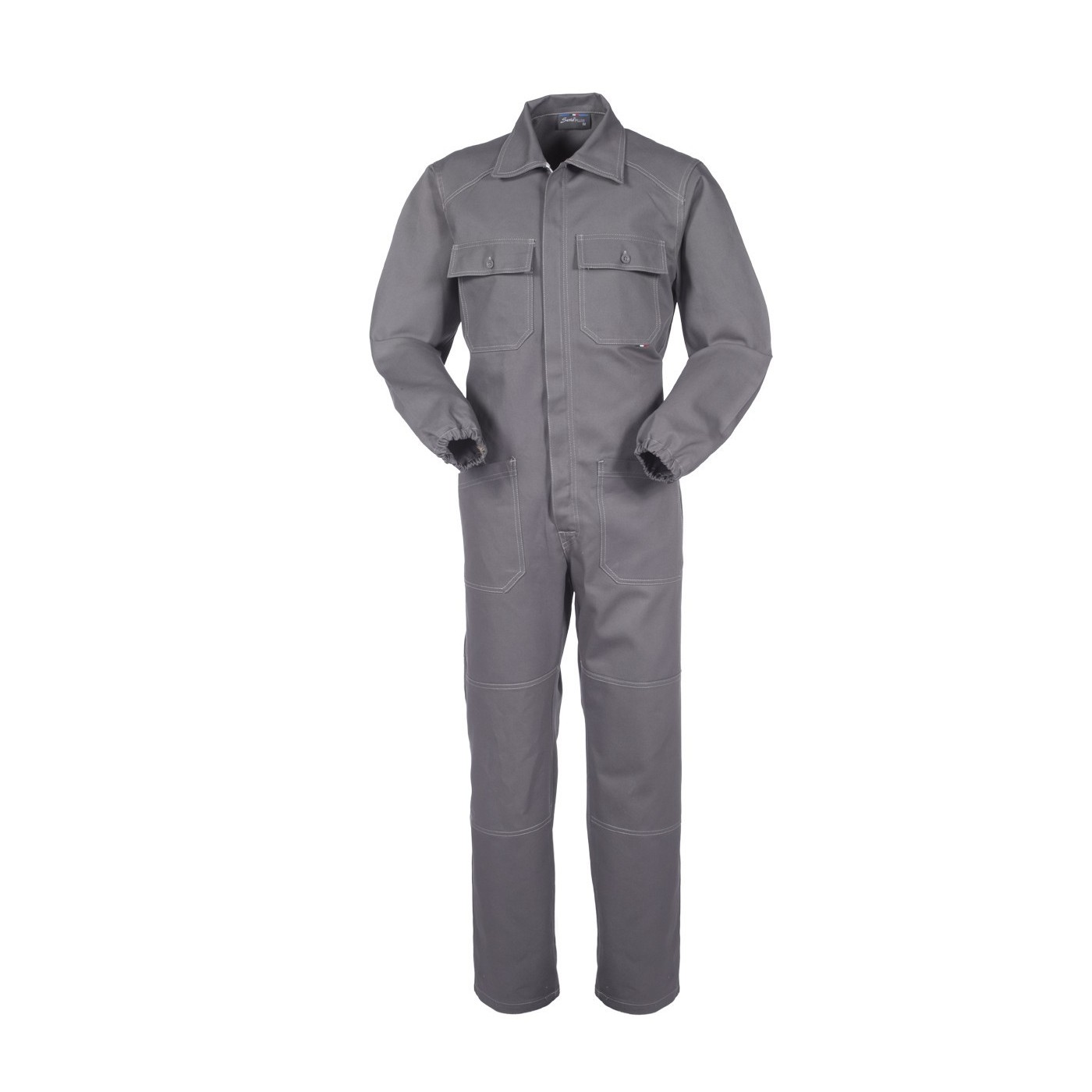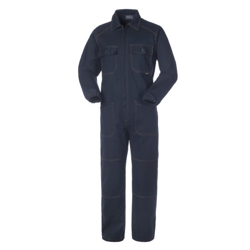 Fermeture frontale avec fermeture à glissière couverte, 2 poches poitrine fermées par un rabat et un bouton, 2 poches inférieures, 1 poche arrière avec fermeture à bouton et 1 mètre de maintien, élastique au dos, poignets avec élastique, surpiqûres contrastées