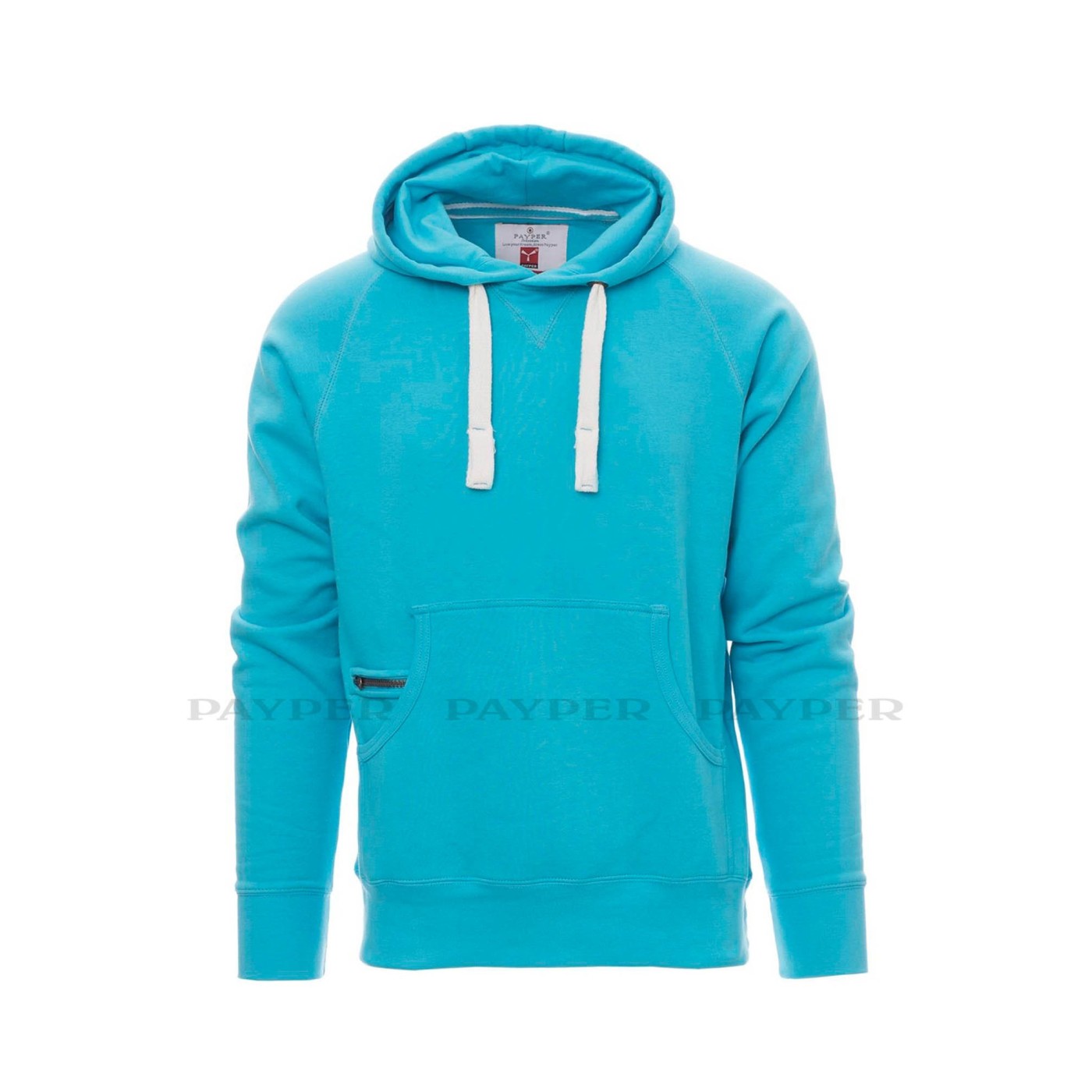 Il s'agit d'un sweat-shirt pour homme moderne avec une capuche à double couture et un large cordon de serrage blanc avec des coutures et des cerceaux métalliques contrastés. Fortement recommandé pour tous ceux qui souhaitent donner une image d'entreprise moderne et sportive.