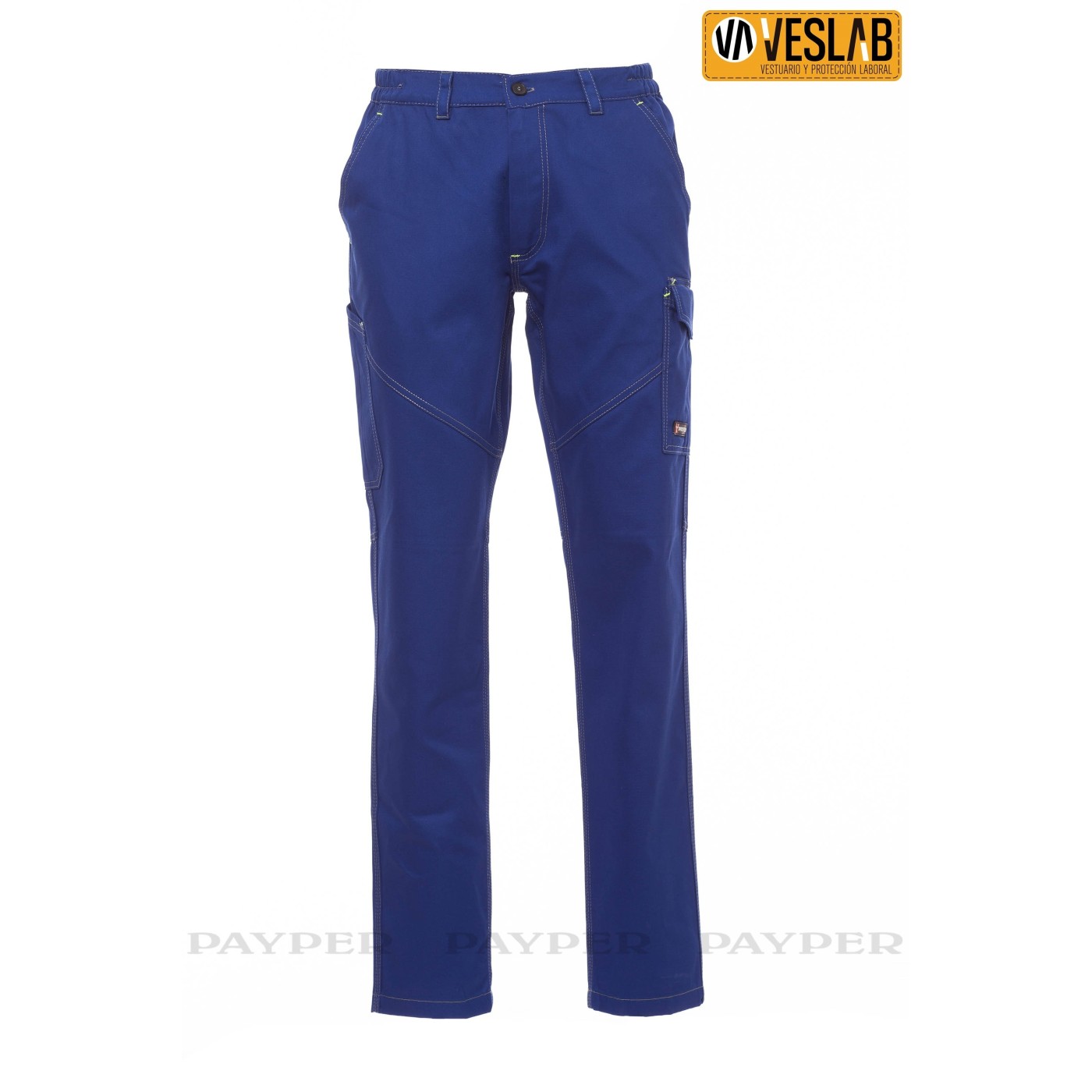 Il a une fermeture zippée et bouton en plastique, deux poches avant classiques, une poche latérale LOCK SYSTEM, une poche pour ruban à mesurer, deux poches arrière, une ouverte et une avec rabat et velcro, triple couture à l'entrejambe et sur le côté. intérieur de la jambe.