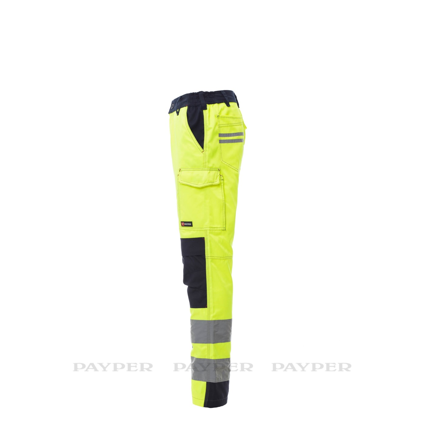 C'est un pantalon de travail haute visibilité avec des bandes réfléchissantes pour toutes les saisons avec des supports pour placer des coussinets dans la zone des genoux et ainsi protéger les articulations.