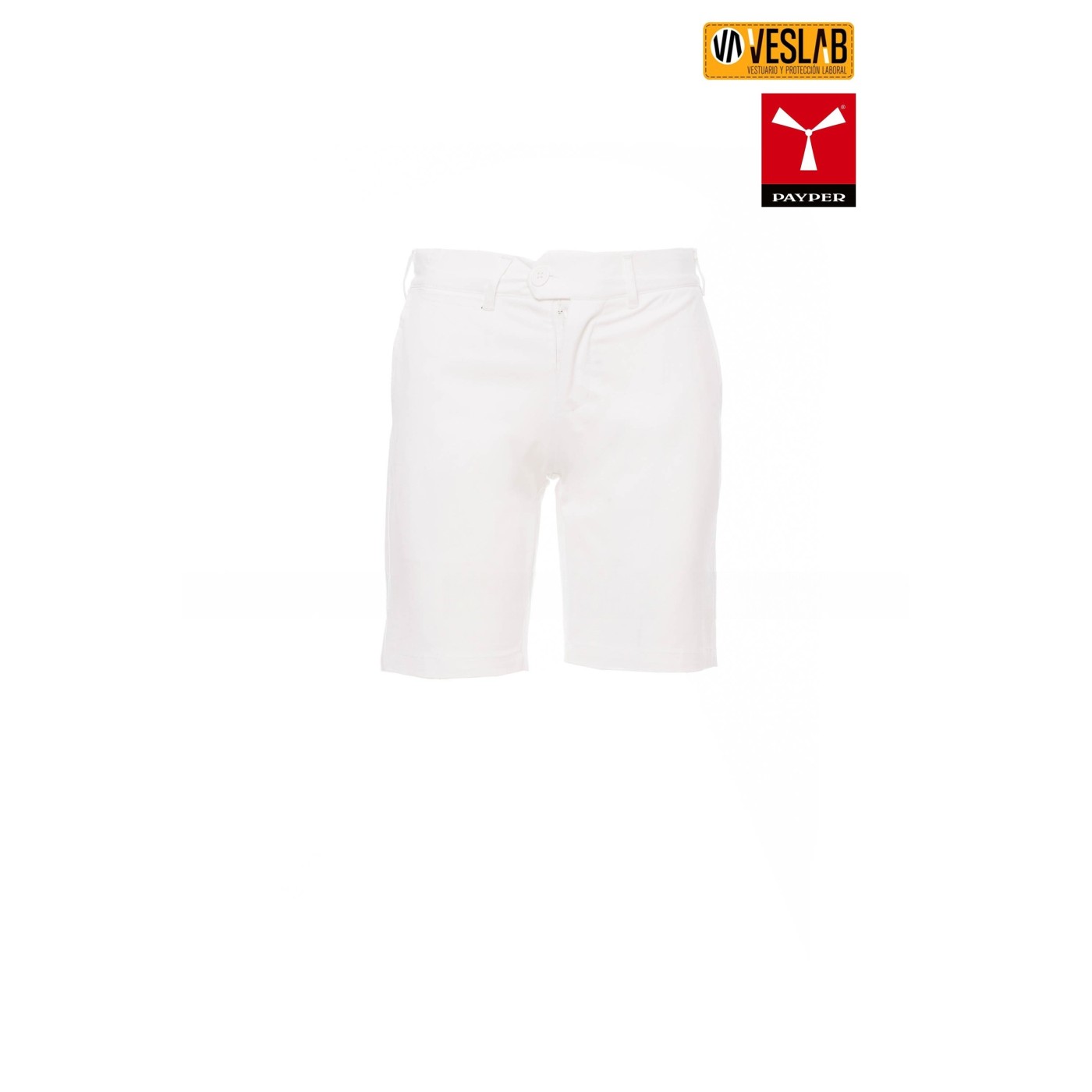 Bermuda classique pour femme, avec fermeture zippée et boutonnée, passants de ceinture à la taille, avec deux poches avant et deux poches arrière avec bouton.