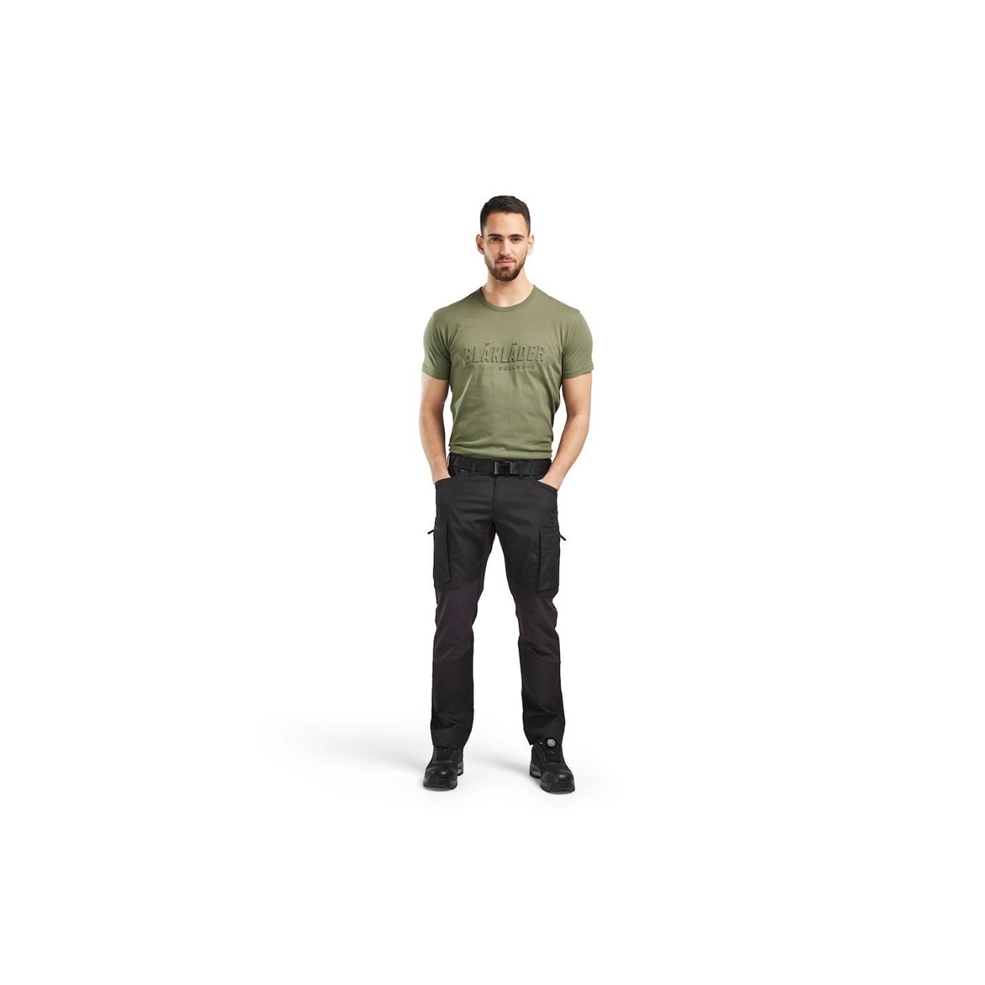 Le t-shirt 3D Blaklader est fabriqué en 100% coton, avec un imprimé 3D sur la poitrine et des coutures renforcées aux épaules et à la nuque. Sa coupe normale et son col en bord-côte en font un vêtement confortable et résistant, parfait pour le travail comme pour les loisirs.