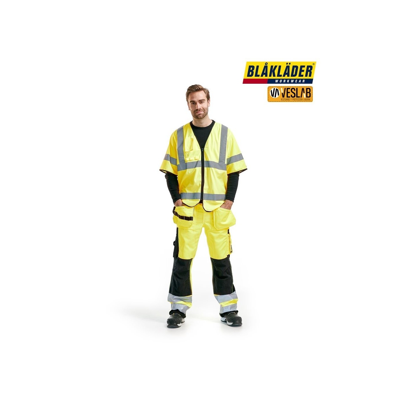 C'est l'habituel gilet réfléchissant haute visibilité avec manches, que Blakläder propose pour la première fois, étant fortement recommandé pour ceux qui souhaitent mettre en œuvre l'utilisation habituelle du gilet. Il a un col avec une bande pour améliorer la finition en forme de visière. Poche d'identification rétractable ainsi que poche interne pour documents, clip radio et porte-stylo.