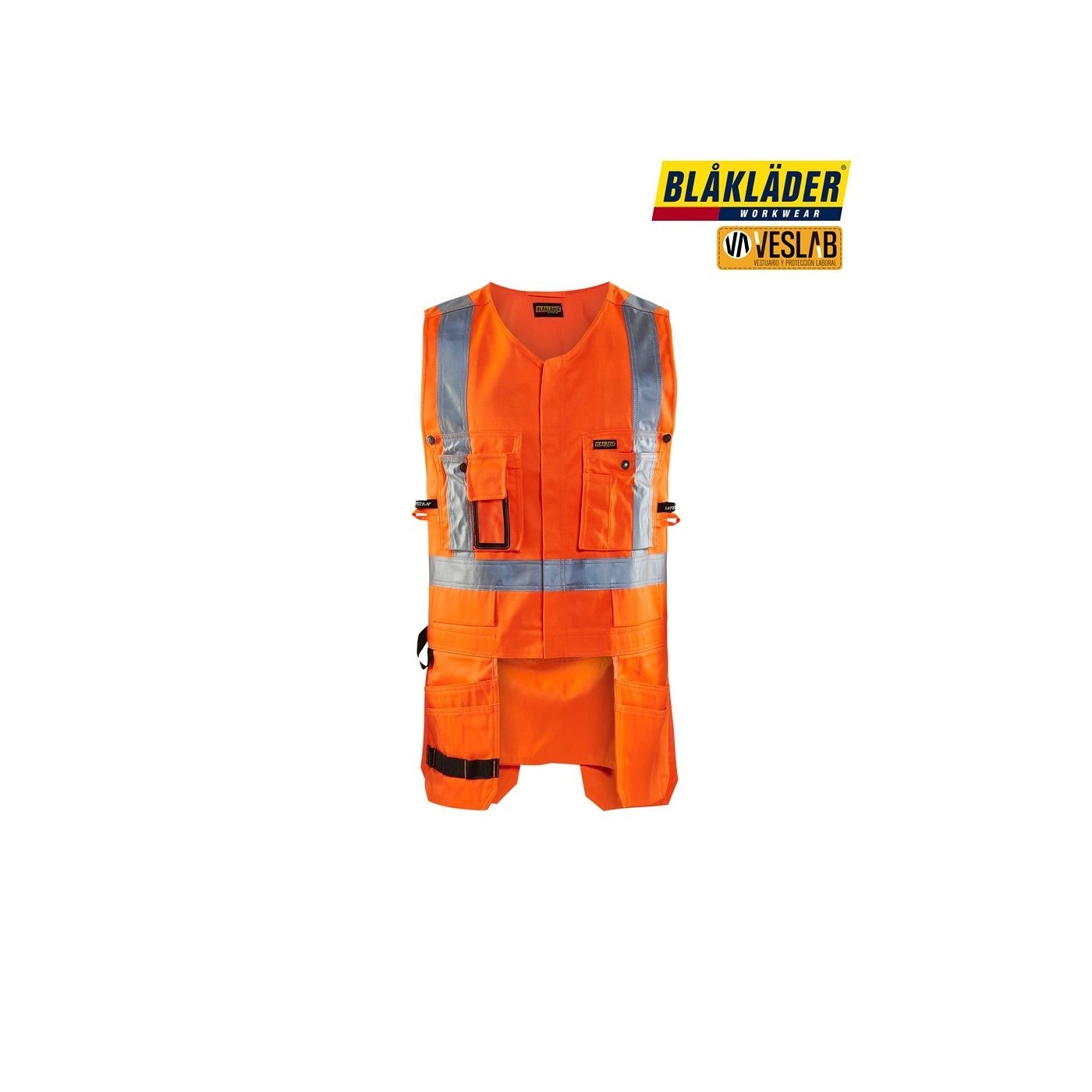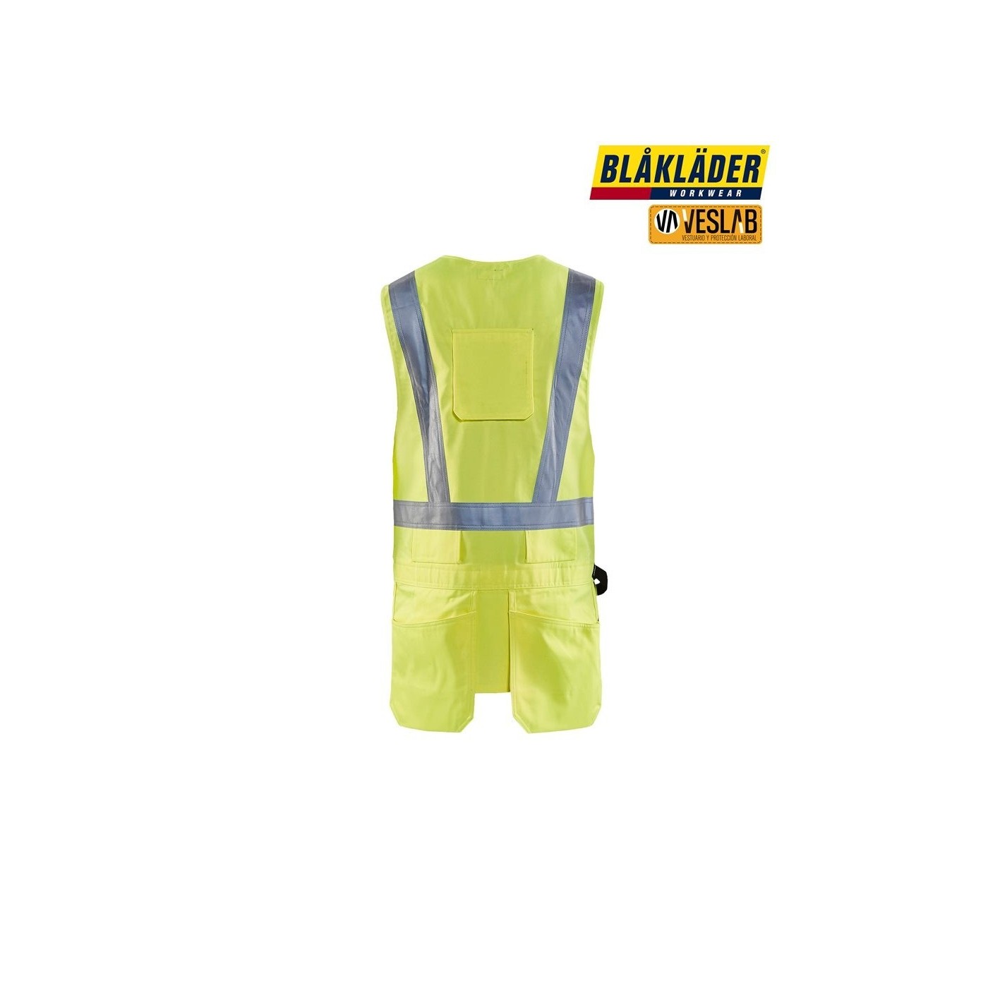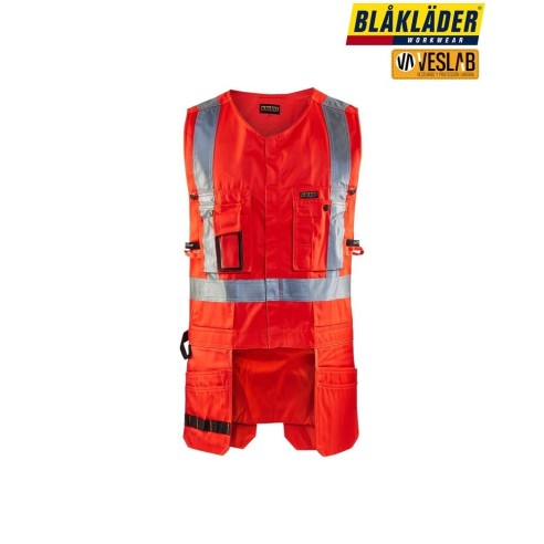 Gilet en tissu fluorescent. Résistant et flexible à la fois. Nous garantissons jusqu'à 25 lavages à 85ºC sans perte de fluorescence. Certification selon EN471, classe 2.