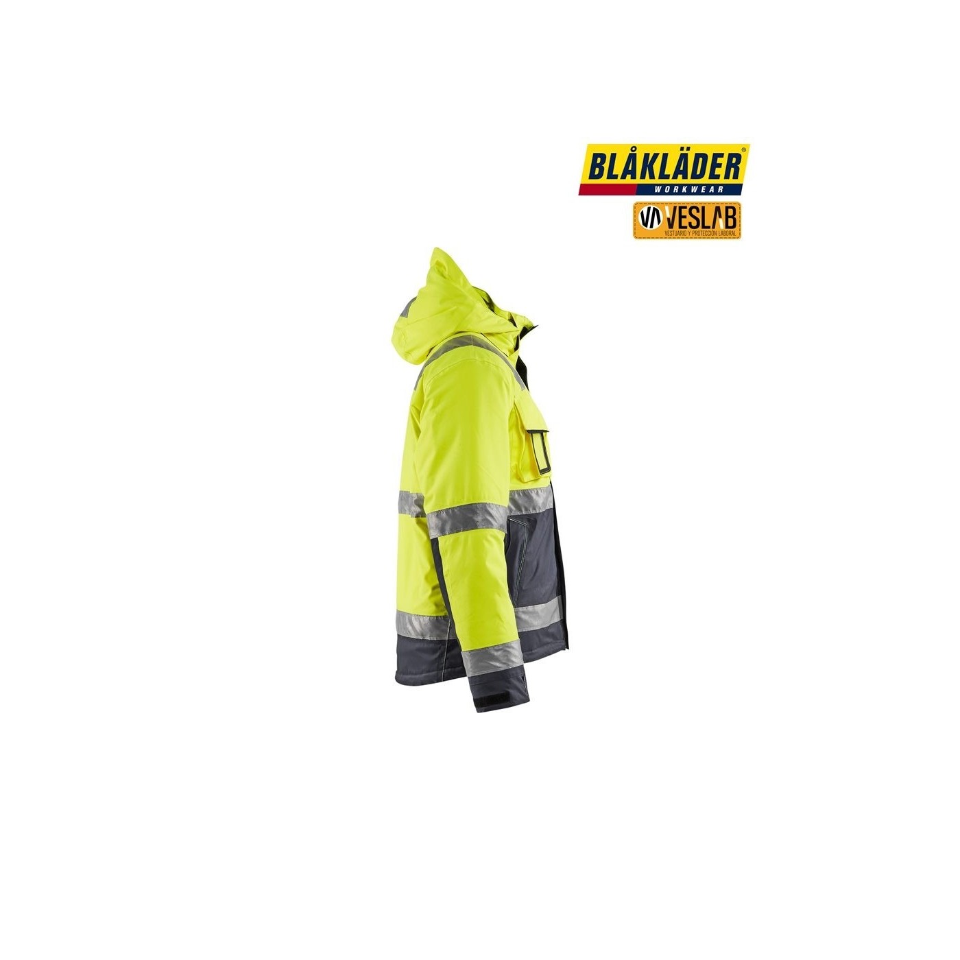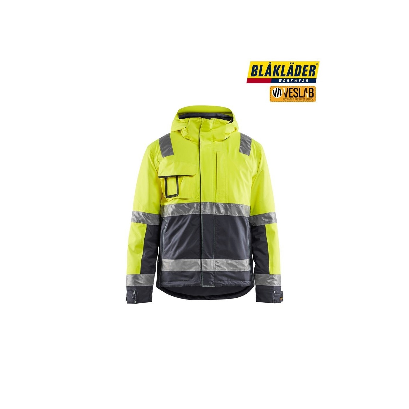Ce coupe-vent haute visibilité et manteau d'hiver imperméable est parfait pour ceux qui recherchent un vêtement qui offre une respirabilité exceptionnelle. Il est doté d'une double membrane qui permet aux molécules de vapeur d'évacuer, ainsi que la sueur et l'humidité, aussi bien au niveau du dos que des aisselles, zones où la transpiration est plus remarquable. Il a également des coutures thermosoudées et une double doublure rembourrée, ce vêtement offre donc un grand nombre de fonctionnalités conçues pour offrir les meilleures performances ; telles que les couleurs sombres dans les zones exposées à une éventuelle saleté. Le manteau est conforme à la norme EN ISO20471, ainsi qu'à la norme EN 343 sur les vêtements de protection à l'air libre. Norme également conforme à la norme EN 342 concernant les vêtements de protection contre le froid en association avec le pantalon Blakläder 1885.