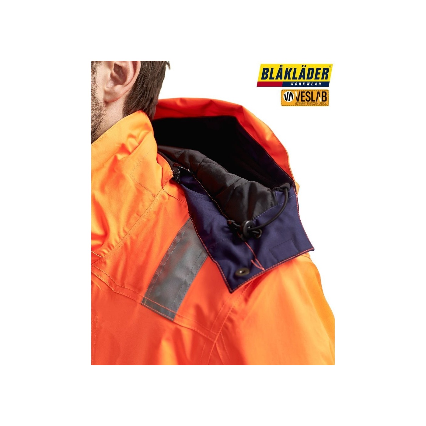 Bande réfléchissante de 50 mm de large, Bande réfléchissante sur le corps, les manches et les épaules, Détail réfléchissant sur la capuche