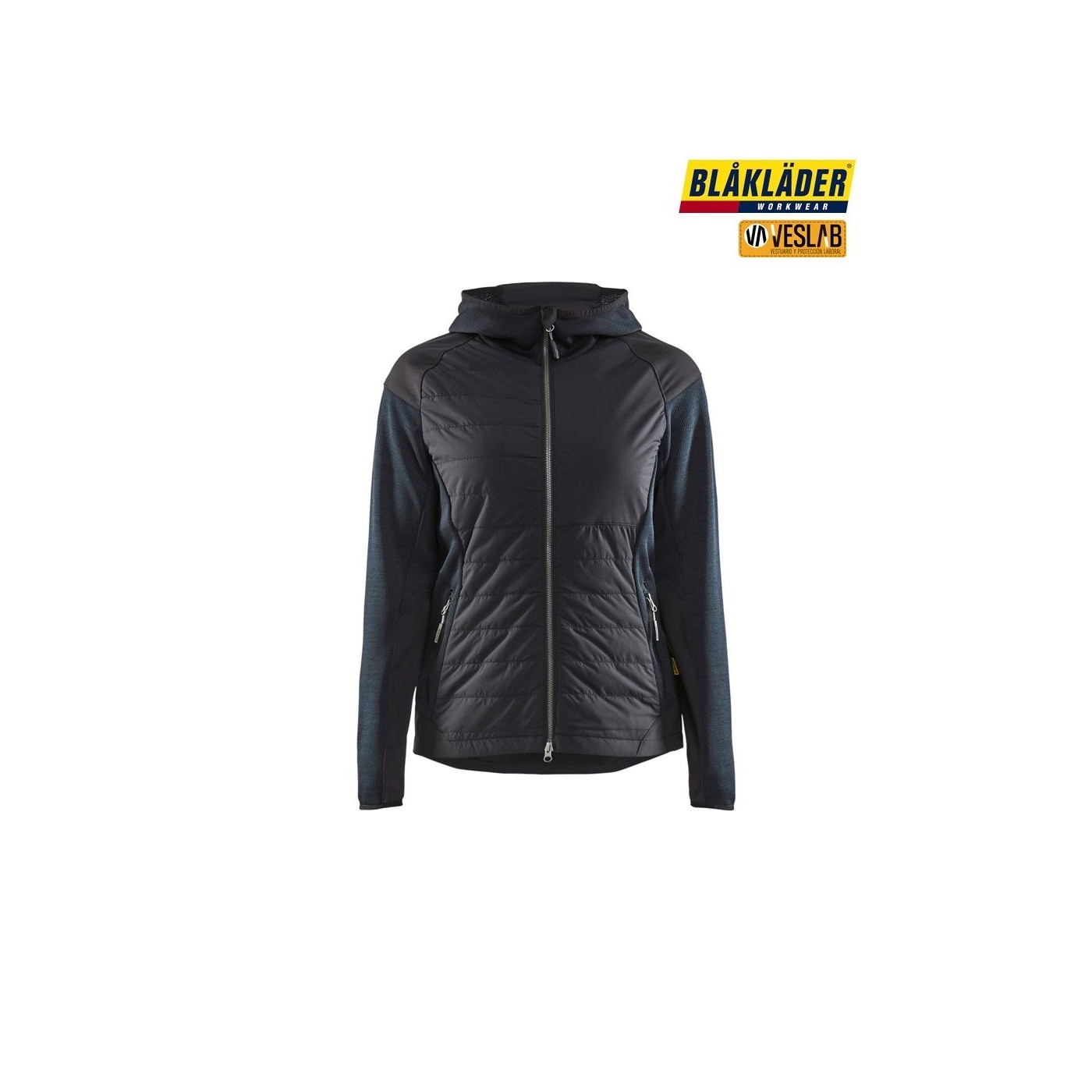 Une veste hybride pour femme dotée d'un rembourrage fin mais chaud sur le devant, le dos et la capuche, et d'un tissu softshell sur les épaules, les bras et les côtés. Un vêtement confortable et chaud qui permet une excellente liberté de mouvement lorsque vous travaillez dans des environnements plus froids. Fonctionne aussi bien comme une veste ou un pull.