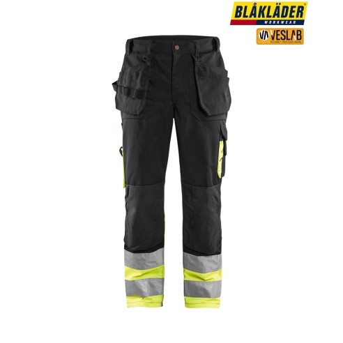 Pantalon de travail haute visibilité avec renforts CORDURA® aux genoux pour prolonger leur durabilité. Ces pantalons offrent une protection adéquate et ont des fonctionnalités intégrées. Poche mètre avec poche supplémentaire. Certifié selon EN471 / EN ISO 20471, classe 1, vêtement de protection haute visibilité.