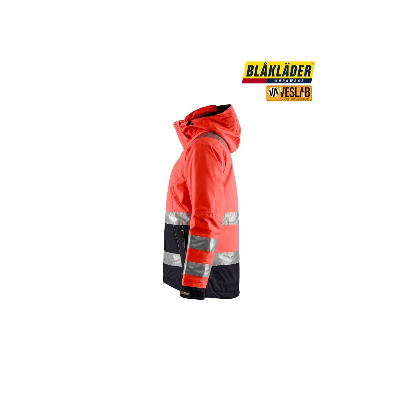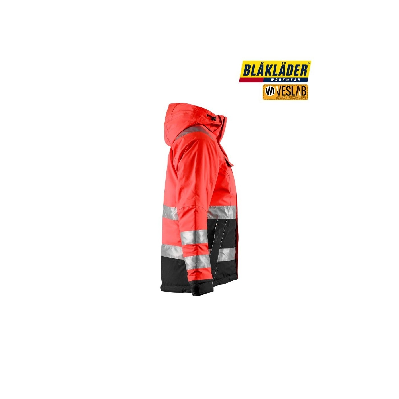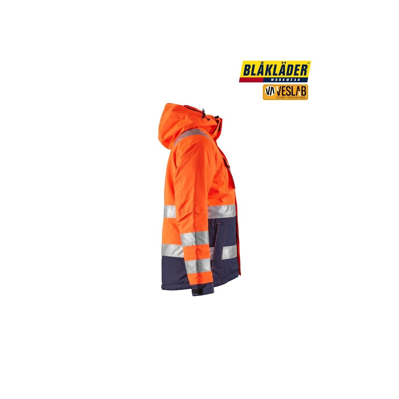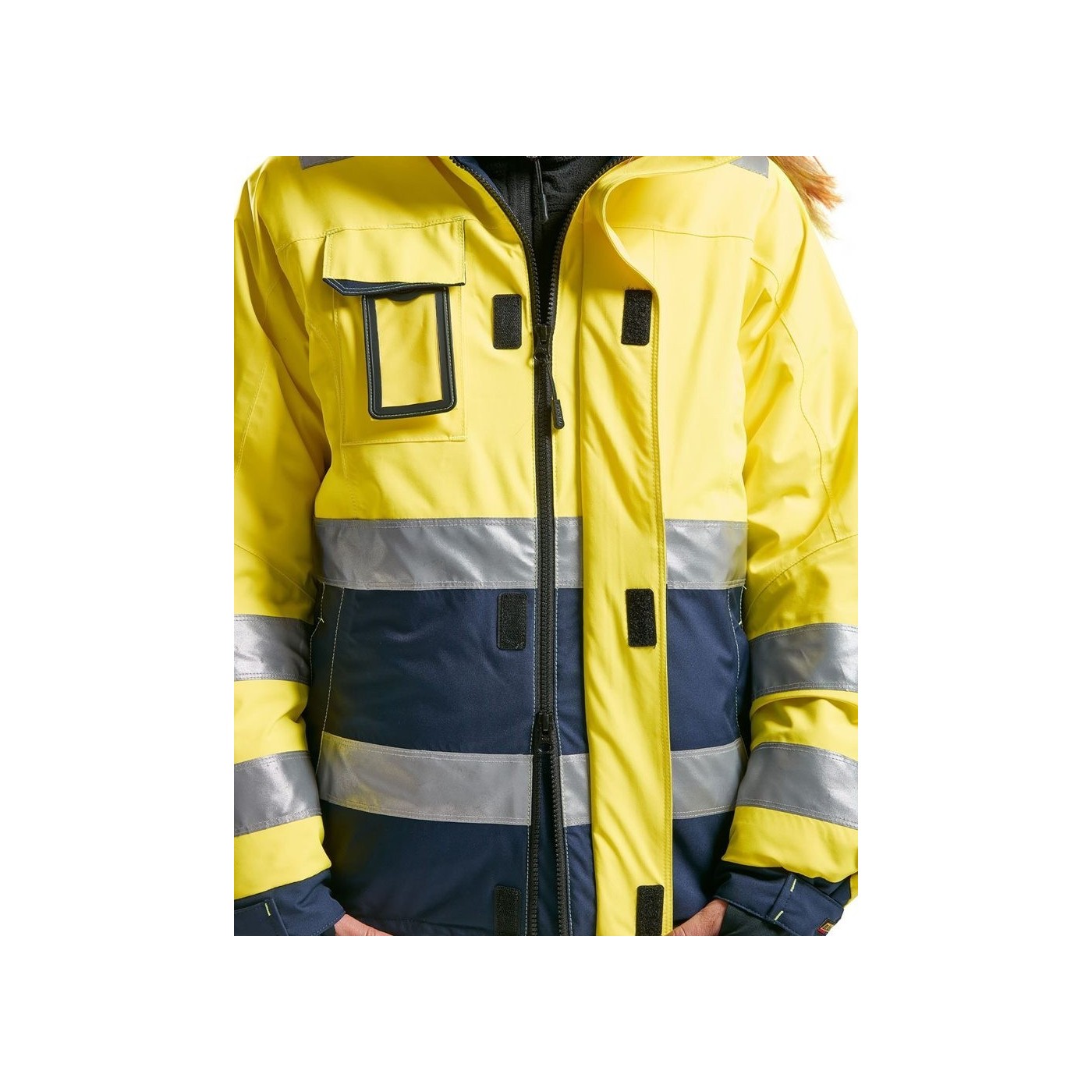 Ce coupe-vent haute visibilité et manteau d'hiver imperméable est parfait pour ceux qui recherchent un vêtement qui offre une respirabilité exceptionnelle. Il est doté d'une double membrane qui permet aux molécules de vapeur d'évacuer, ainsi que la sueur et l'humidité, aussi bien au niveau du dos que des aisselles, zones où la transpiration est plus remarquable. Il a également des coutures thermosoudées et une double doublure rembourrée, ce vêtement offre donc un grand nombre de fonctionnalités conçues pour offrir les meilleures performances ; telles que les couleurs sombres dans les zones exposées à une éventuelle saleté. Le manteau est conforme à la norme EN ISO20471, ainsi qu'à la norme EN 343 sur les vêtements de protection à l'air libre. Norme également conforme à la norme EN 342 concernant les vêtements de protection contre le froid en association avec le pantalon Blakläder 1885.