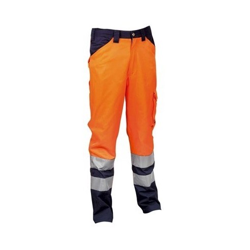 Pantalon de travail haute visibilité Cofra avec bandes réfléchissantes, poches mètre, dos et côtés avec velcro. Il a une taille élastique pour un meilleur ajustement et une goupille porte-marteau.