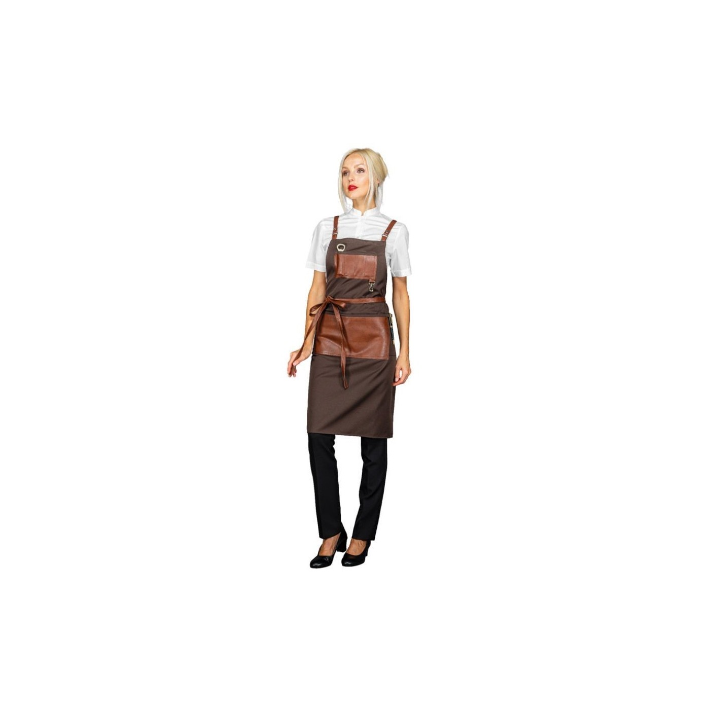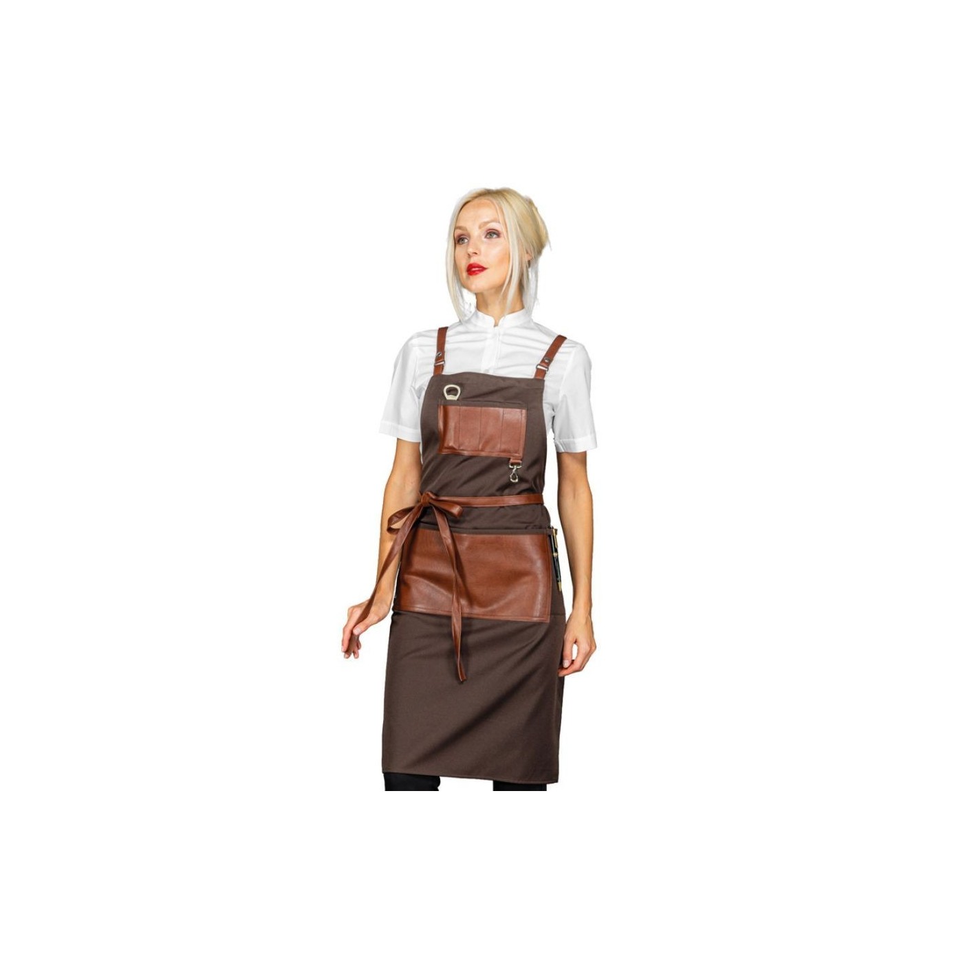Tablier à bavette Bristol Taille et tissu unisexes combinés avec du cuir.