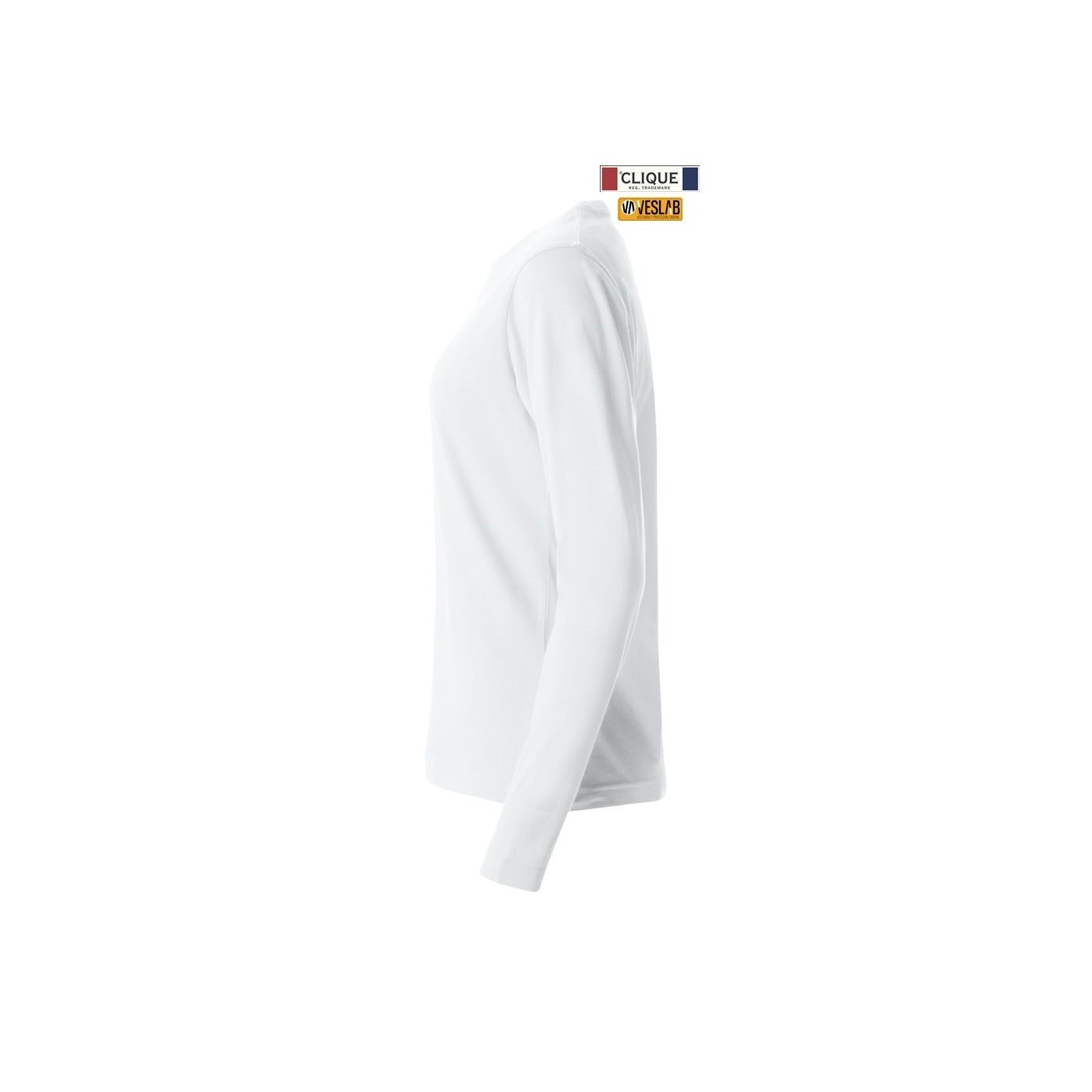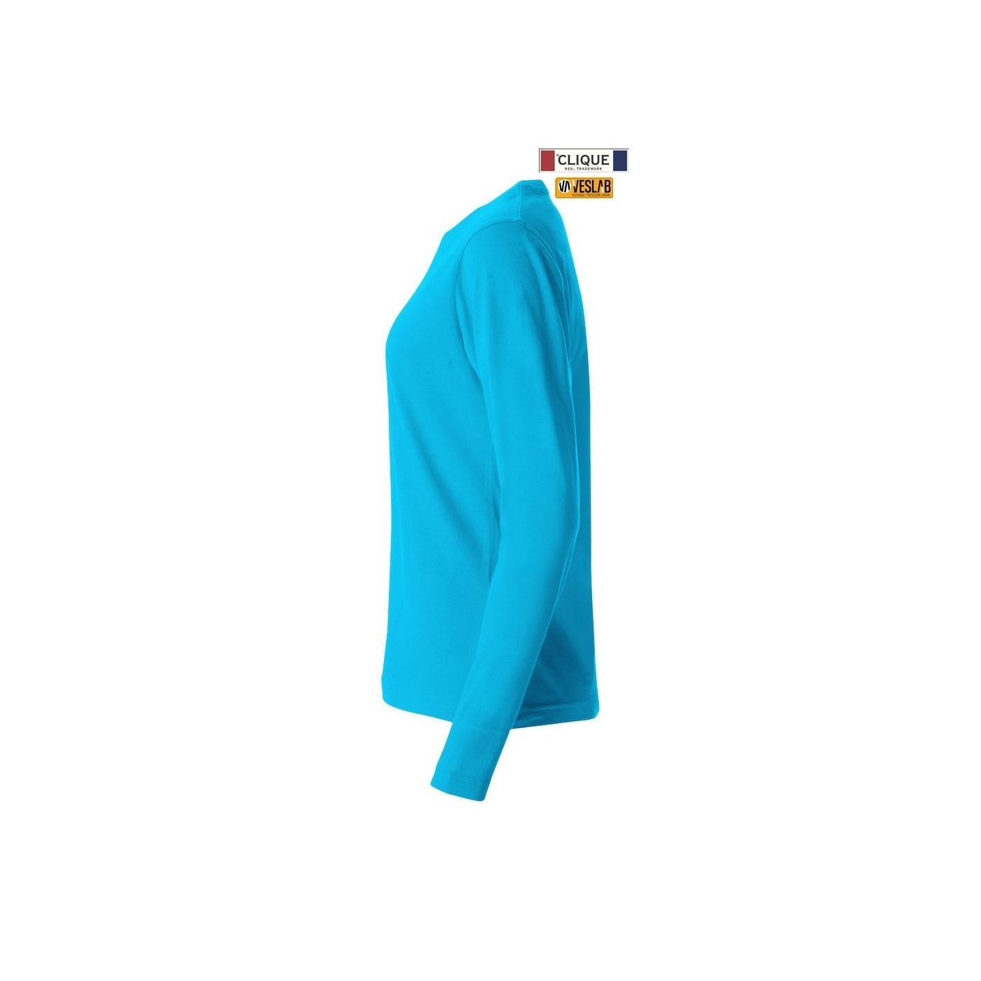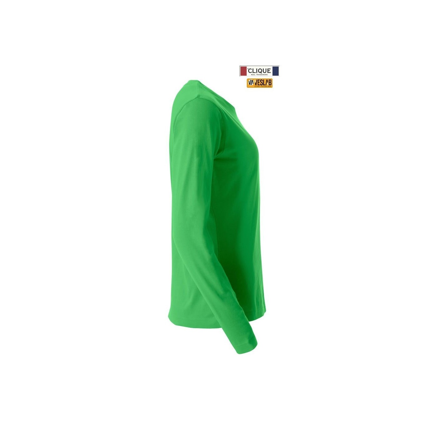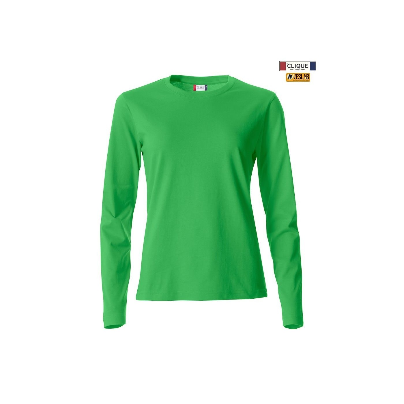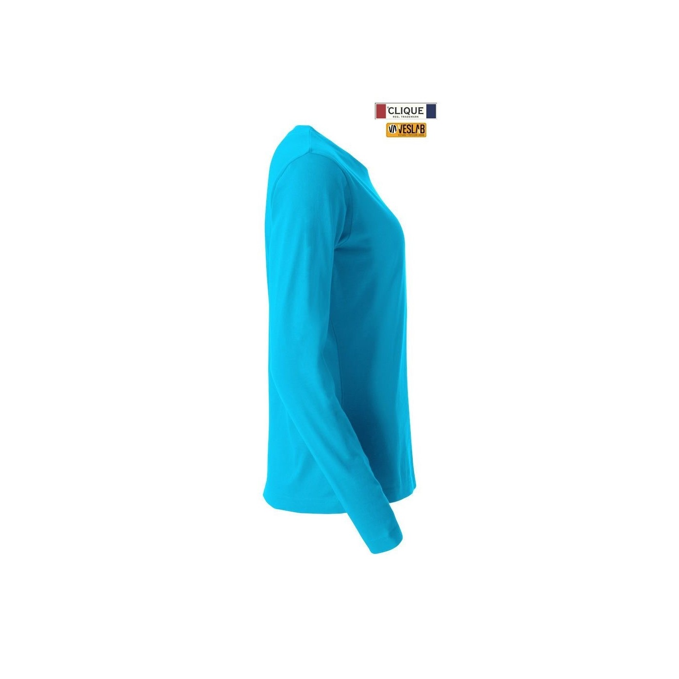 Le T-shirt Basic à manches longues pour femme, propose de l'élasthanne dans le col et une coupe ajustée.
