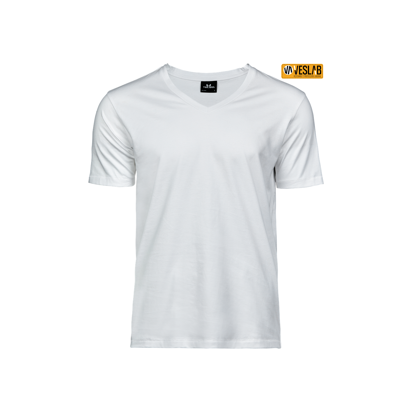 T-shirt premium coupe slim en maille simple avec un col en V profond en fibres longues de haute qualité.