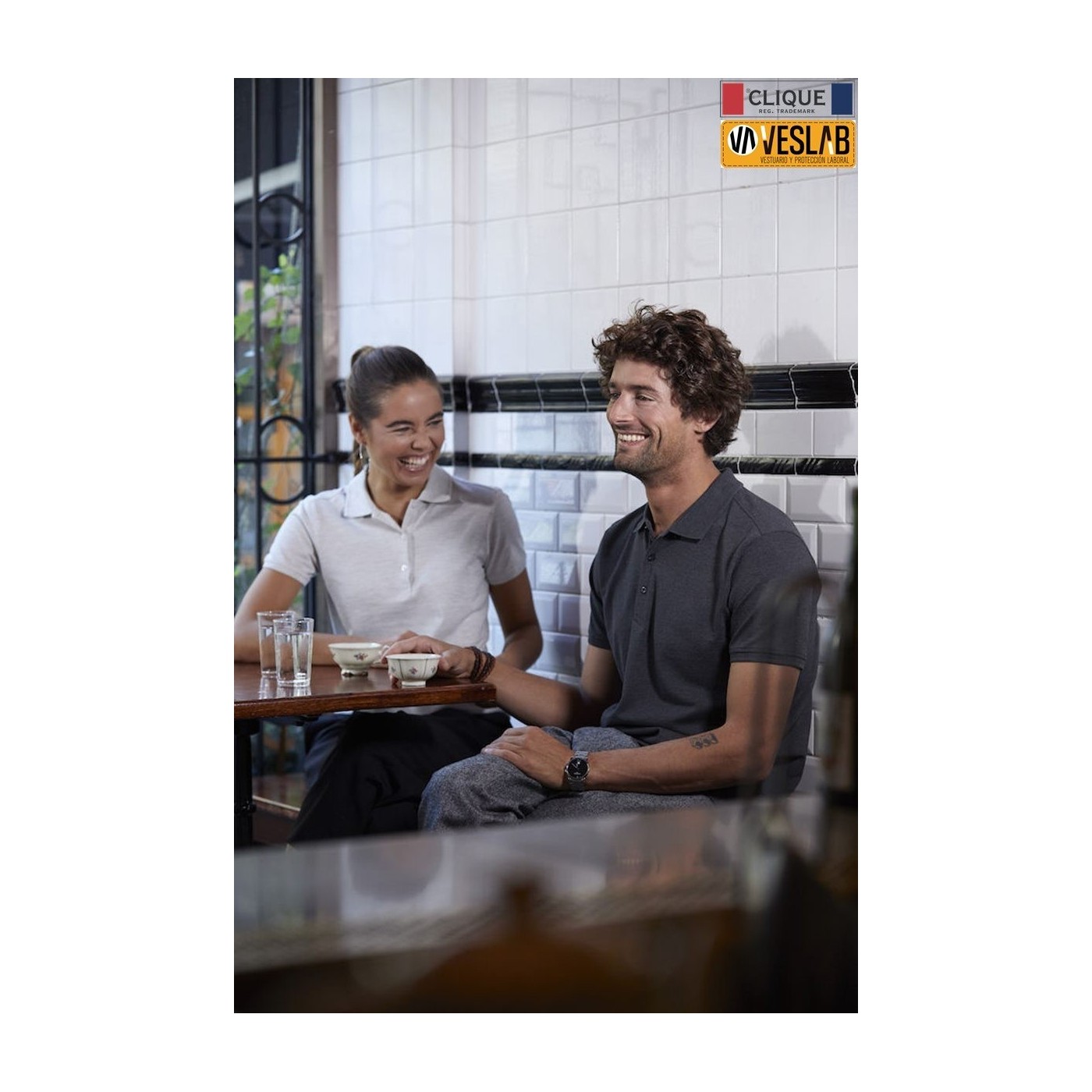 Polo à manches courtes ajusté pour femme classique pour un usage quotidien en tissu de composition 100% coton biologique. Il possède trois boutons assortis à la couleur du vêtement avec des ouvertures latérales et une patte renforcée.