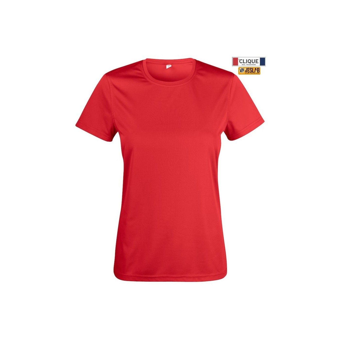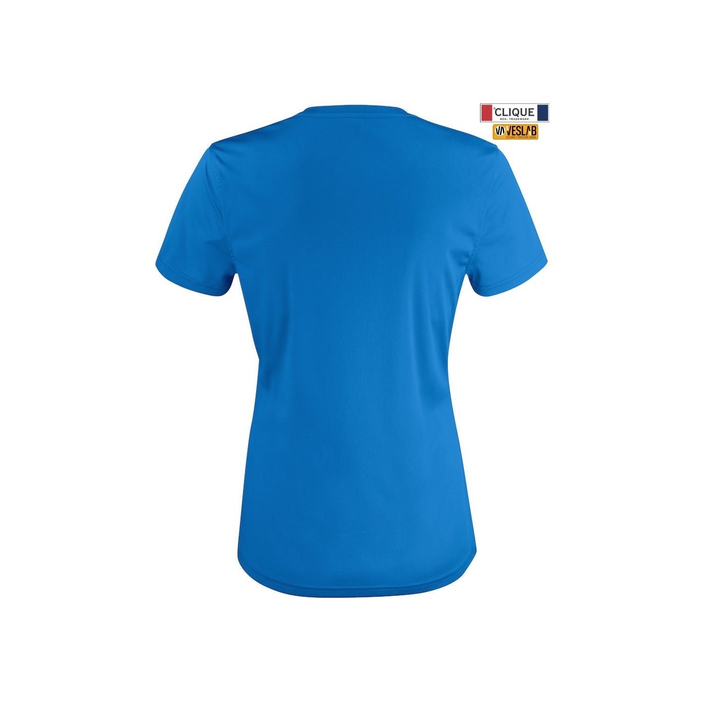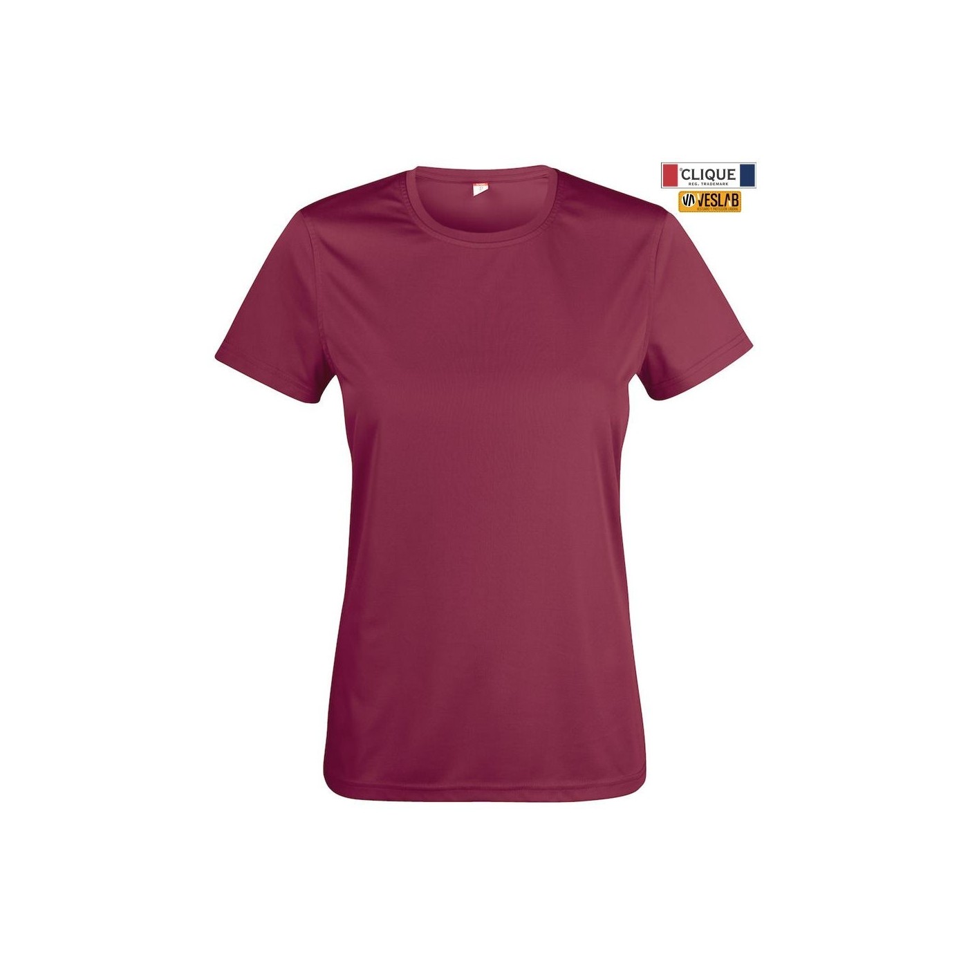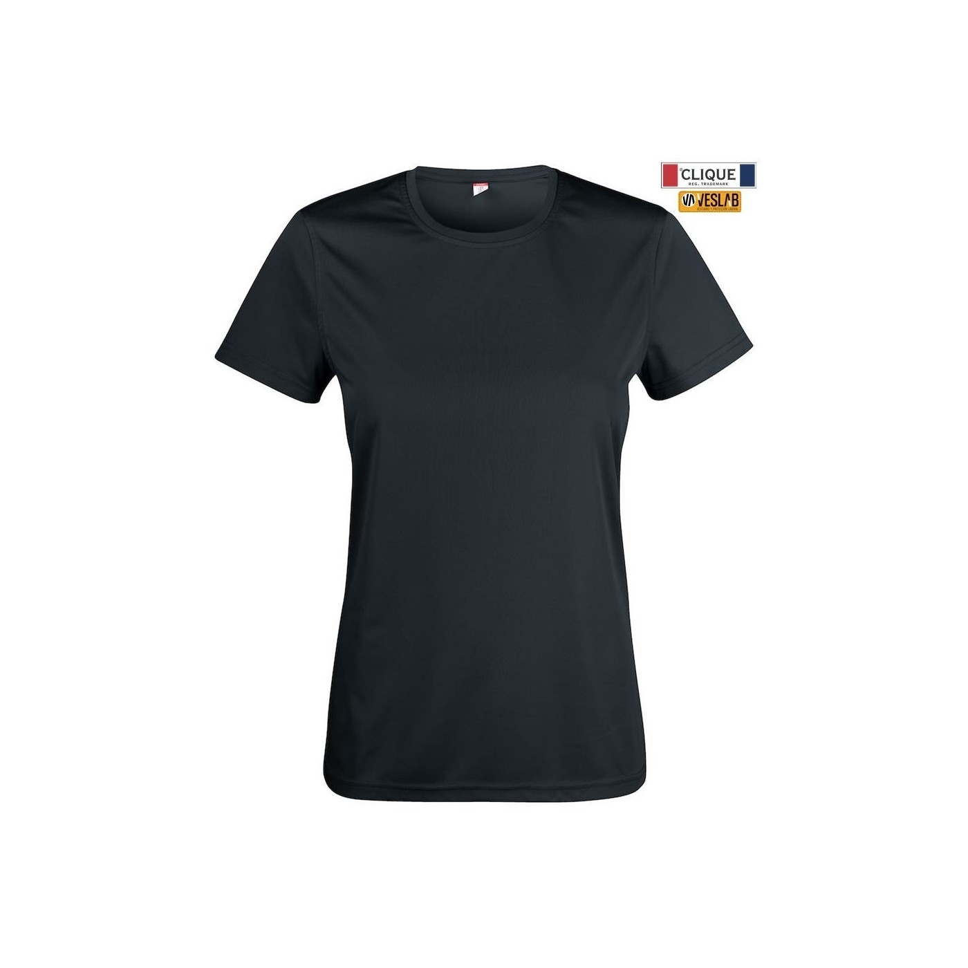 T-shirt technique pour femme en tissu interlock, coutures latérales, patte de boutonnage renforcée et étiquette facile à enlever. Avec protection contre les rayons ultraviolets UV/50