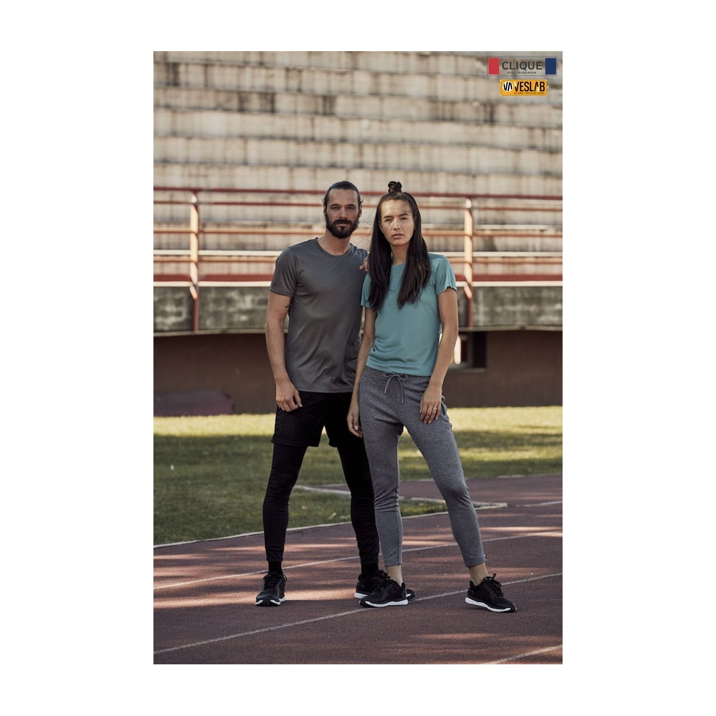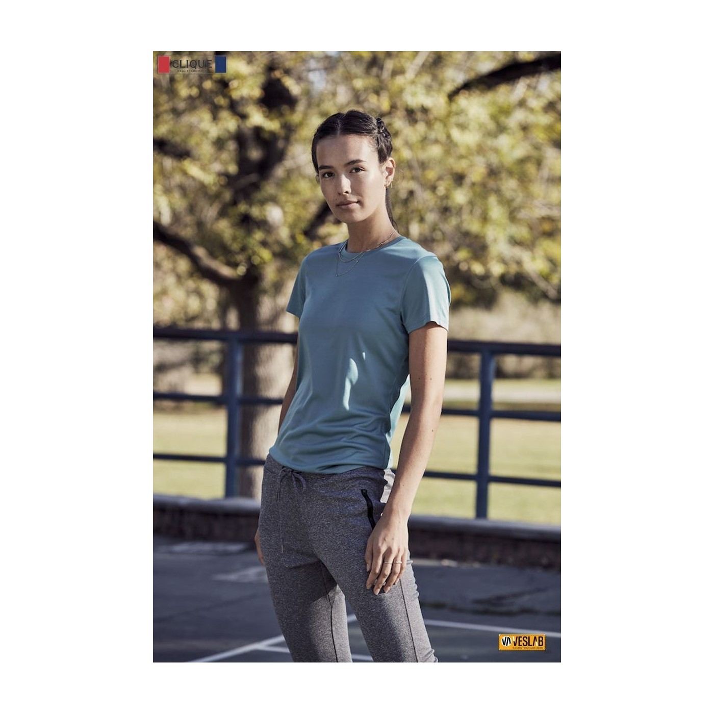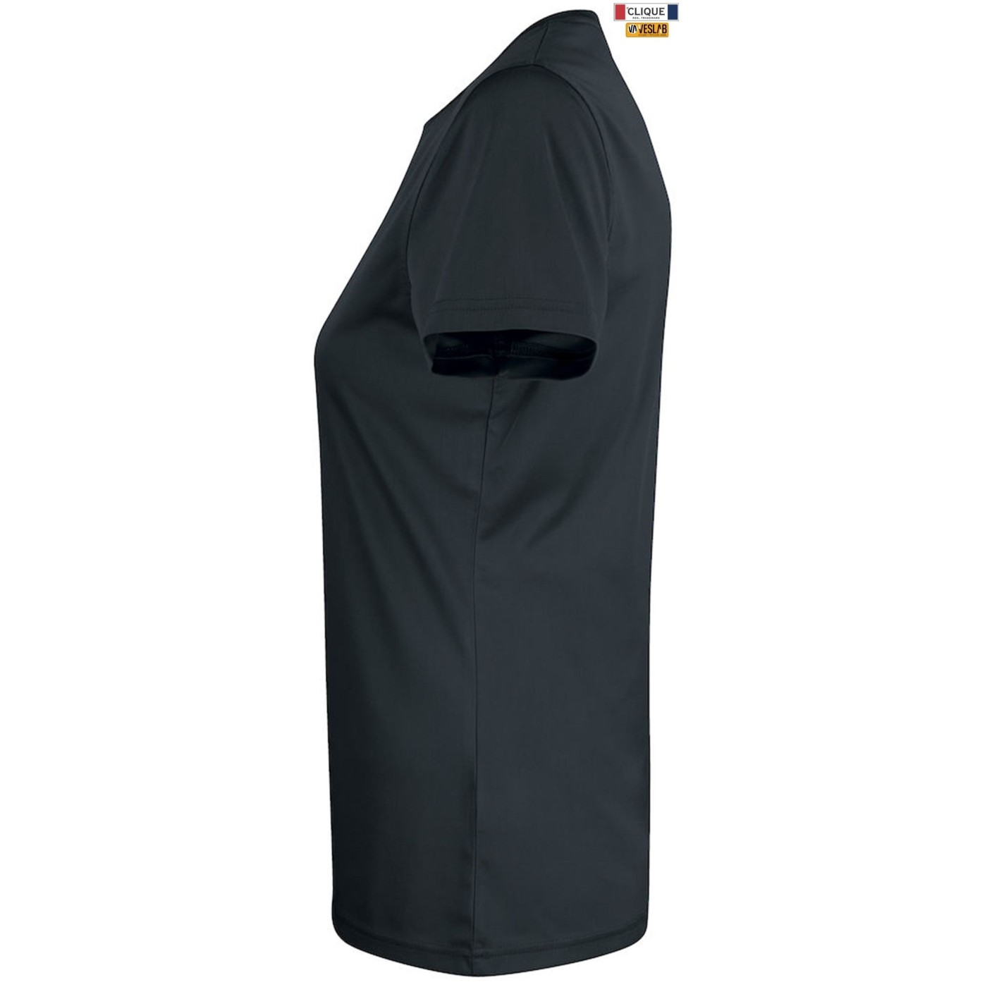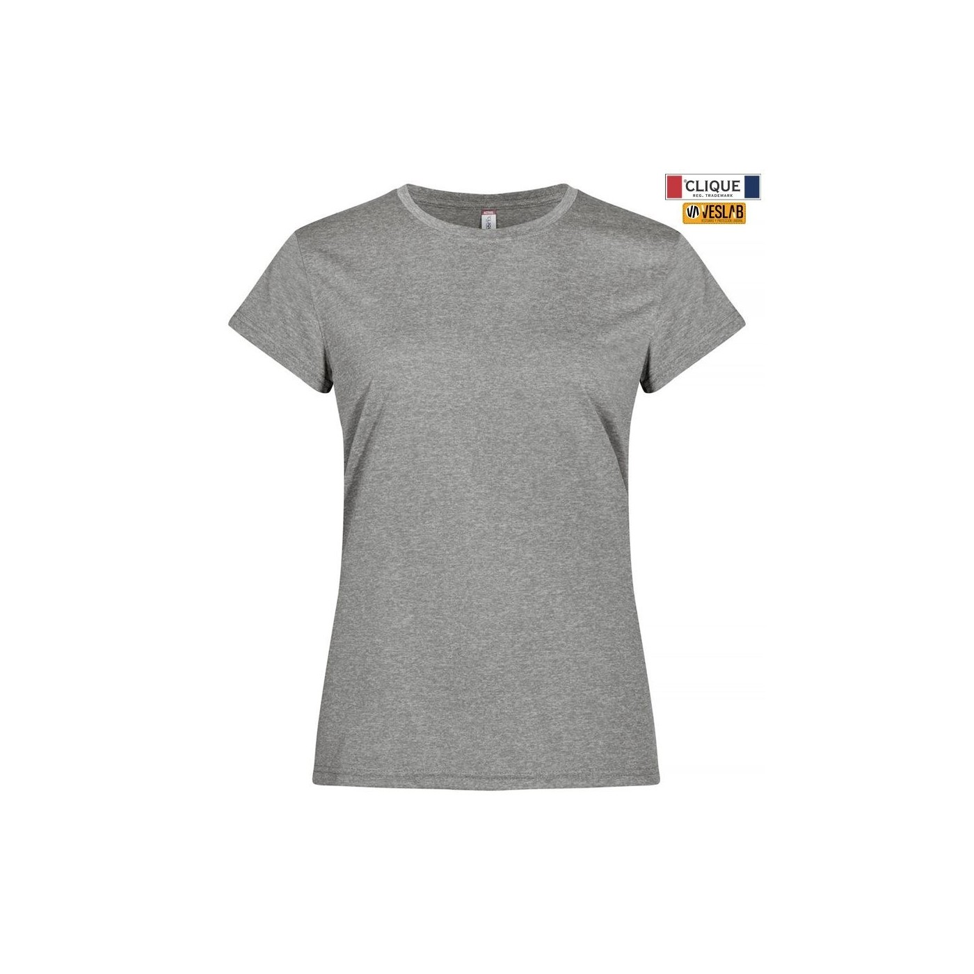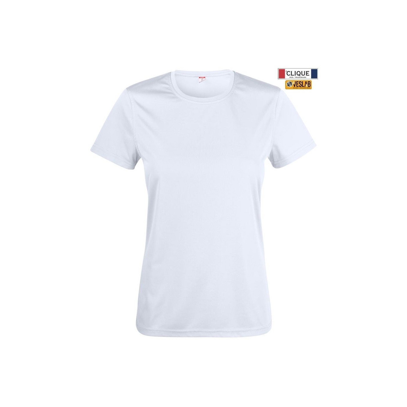 T-shirt technique pour femme en tissu interlock, coutures latérales, patte de boutonnage renforcée et étiquette facile à enlever. Avec protection contre les rayons ultraviolets UV/50