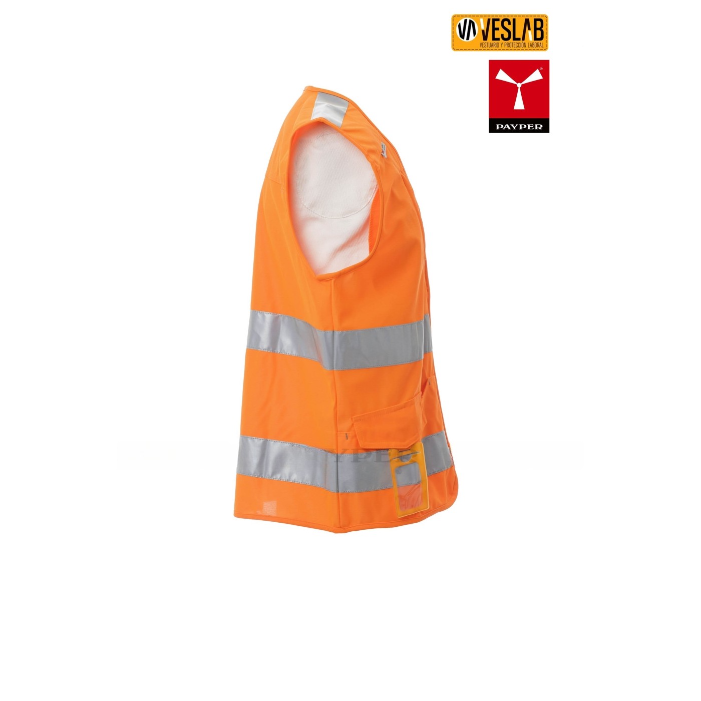 Gilet haute visibilité avec rayures 3M et fermeture éclair dissimulée sur le devant. Il dispose de deux poches kangourou frontales LOCK SYSTEM pour transporter outils, walkies, téléphones, petits documents, etc... Il comprend également un porte-badge d'identification rabattable et amovible, et une poche poitrine zippée. Tout cela conçu pour ceux qui ont besoin d'un gilet plus fonctionnel et complet que le gilet de base habituel.