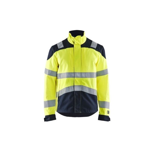 La veste multi-normes à haute visibilité offre une protection avancée avec un tissu ignifuge, résistant à l'eau et à la saleté. Certifié pour répondre à diverses normes de sécurité, il comprend des poches fonctionnelles, du ruban réfléchissant et une conception réglable pour plus de confort et de visibilité. Idéal pour les environnements de travail exigeants.