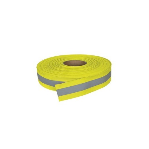 Rouleau de ruban rétroréfléchissant à base de textile, adapté à la couture sur les vêtements. Composé d'une bande centrale étroite, rétroréfléchissante gris argent, sur une base textile de différentes couleurs. Système de rétroréflexion de microsphère. Vente par rouleaux complets. Rouleau de 100 m. Largeur 5cm.