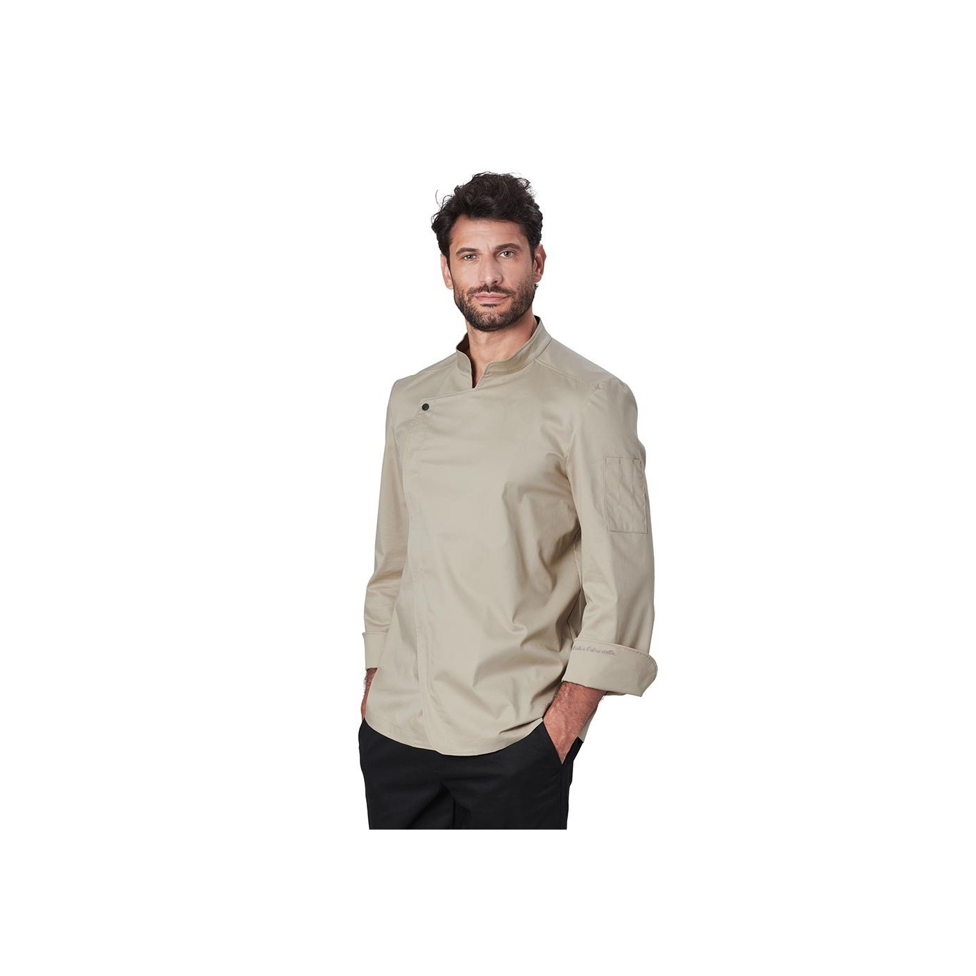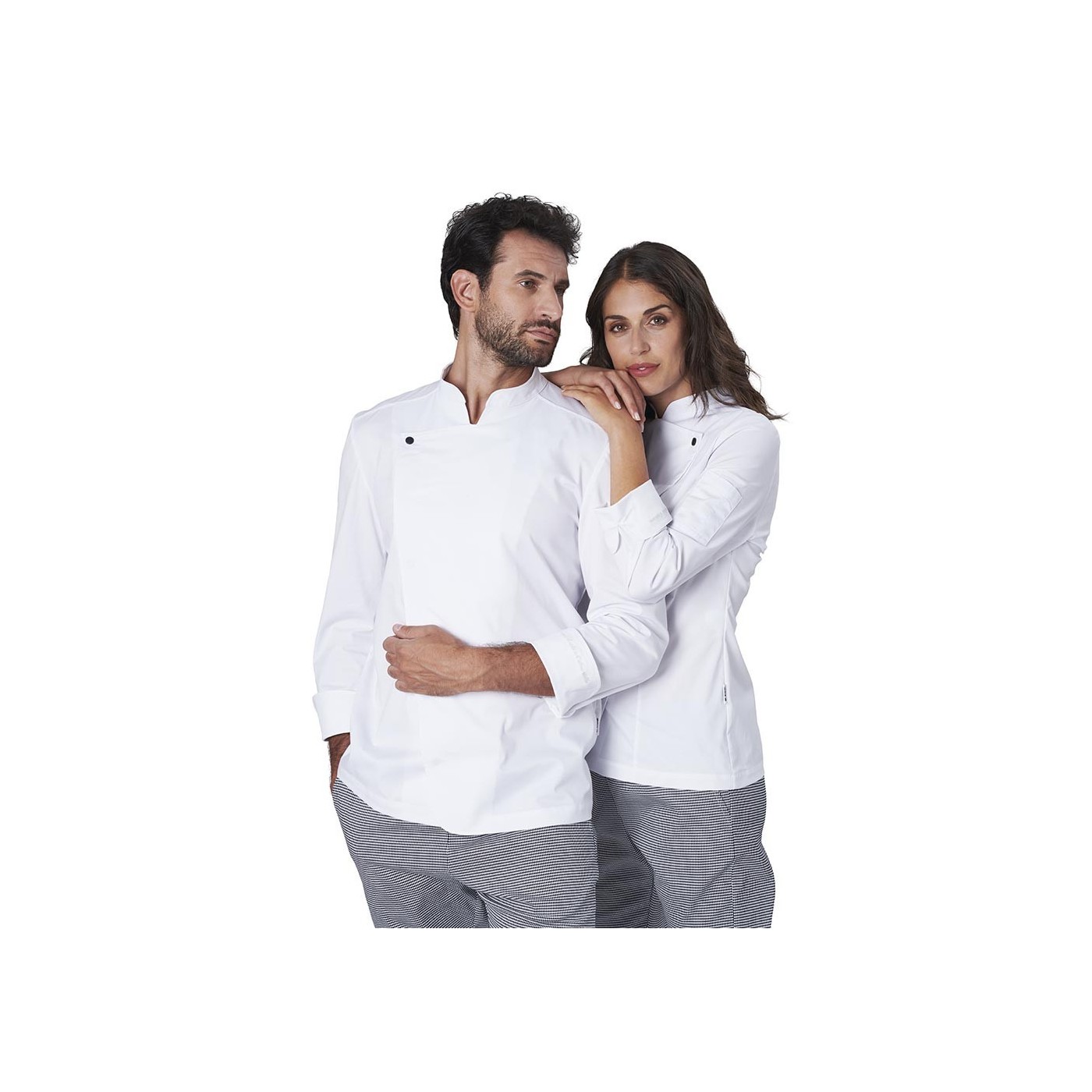 La composition du tissu de cette veste est de 55 % coton, 42 % polyester et 3 % élasthanne, offrant une combinaison parfaite de confort et de durabilité. Avec un poids de 160 gr/m², la veste est légère et respirante, idéale pour le rythme rapide de la cuisine.