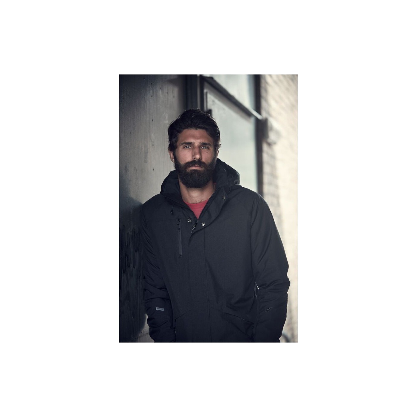 La Mountain Padded Jacket M offre une protection contre le froid et la neige grâce à sa capuche amovible, sa guêtre pare-neige et ses poignets avec trou pour les pouces. Avec des poches pratiques, une bordure réfléchissante et une coupe personnalisée, il est idéal pour les activités de plein air. Résistant à l'eau et respirant (WP 8000/MVP 8000).