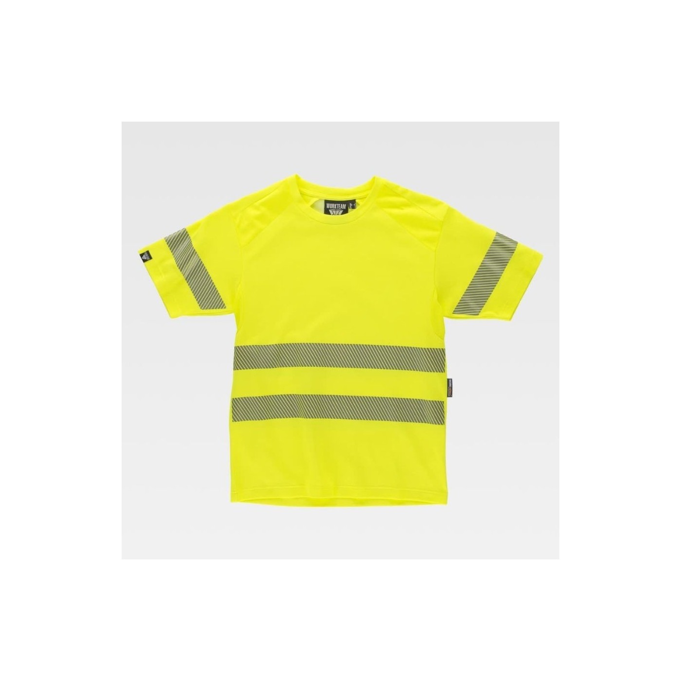 T-shirt micropiqué à manches courtes avec doublure en coton, léger et respirant. Il intègre des bandes réfléchissantes segmentées et un tissu en maille au niveau des aisselles pour une meilleure ventilation. Conforme à la réglementation EN ISO 20471 niveau 2.