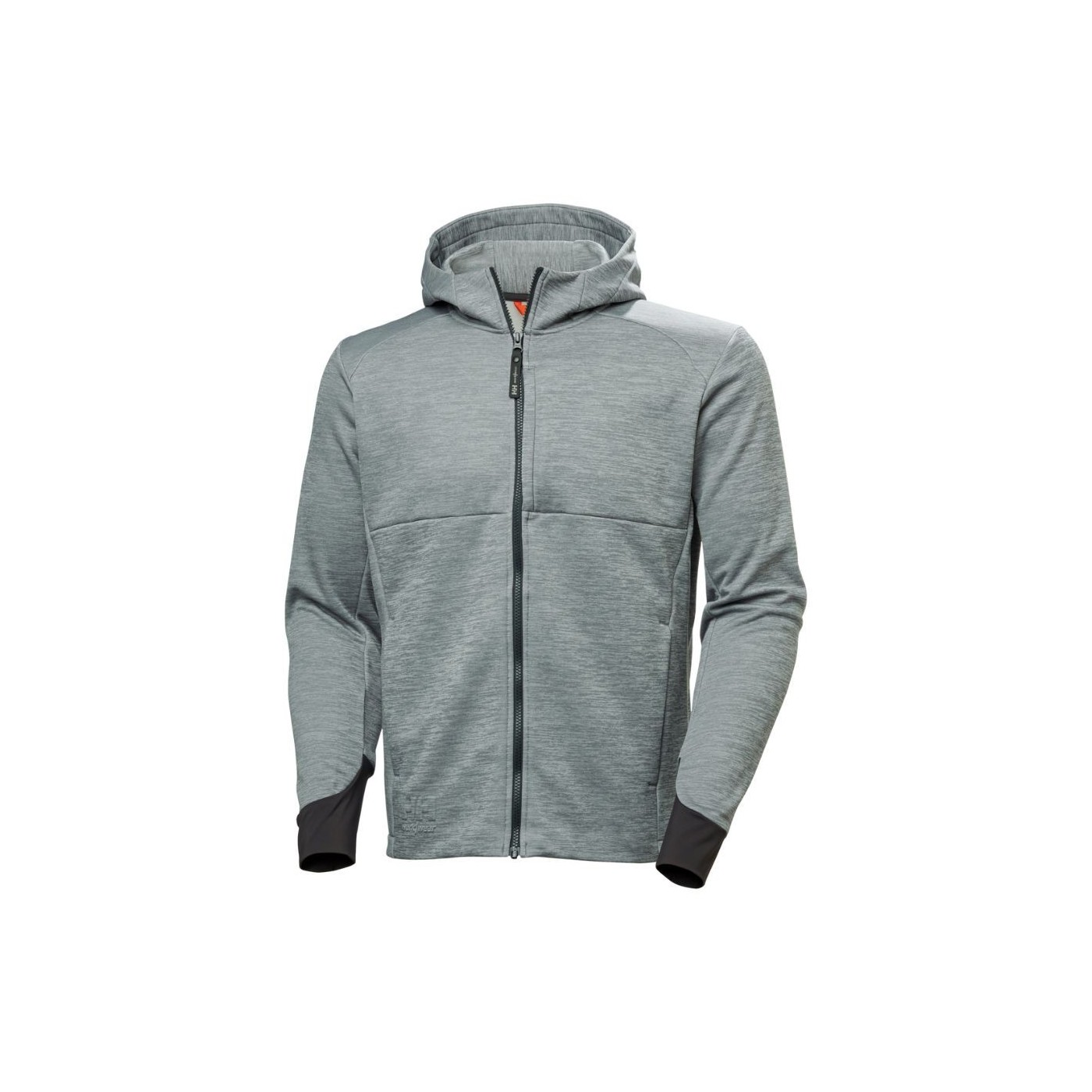 Sweat technique Helly Hansen en polyester recyclé 100 %, 260 g/m². Avec poches multiples, poignets réglables et détails réfléchissants pour confort, sécurité et durabilité en environnement professionnel exigeant.