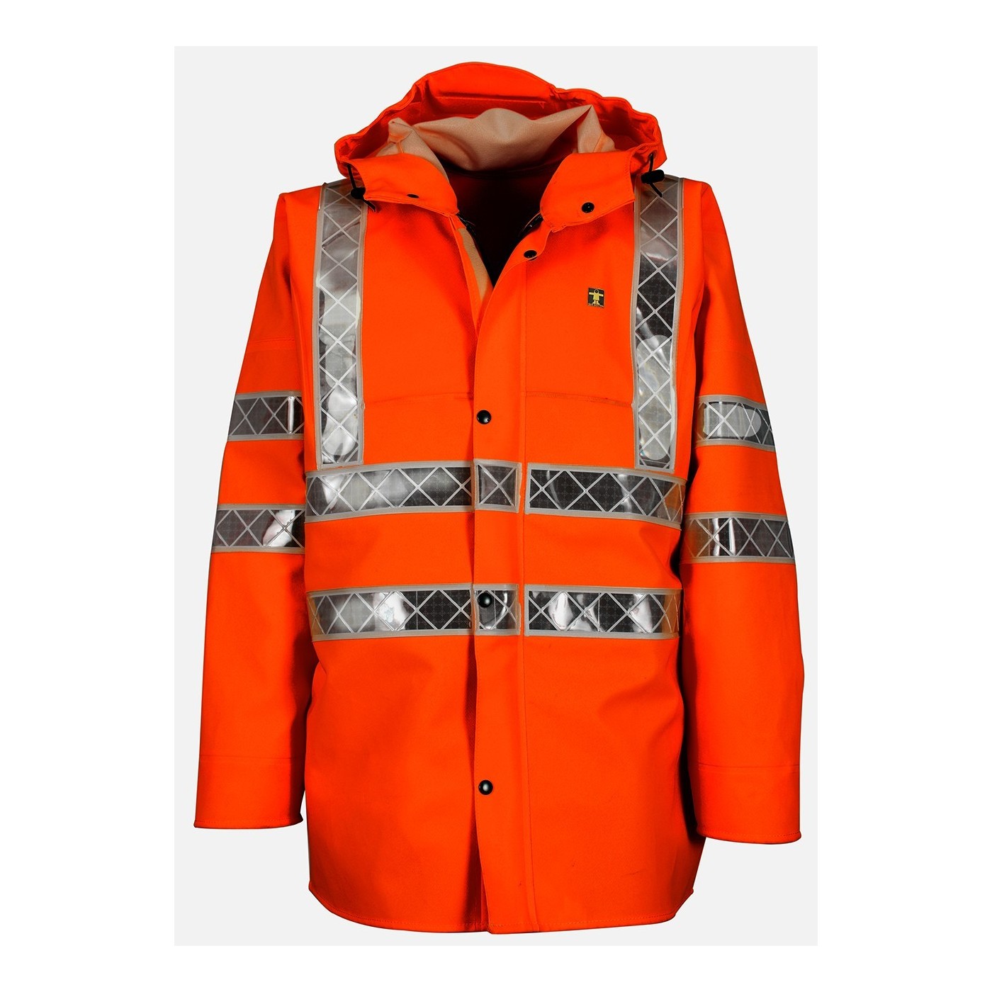 - La Capuche "MAGIC" qui tourne avec la tête (système breveté) : Elle tourne avec la tête et permet une vision panoramique en toutes circonstances apportant ainsi une sécurité optimale. Elle est suffisamment ample pour être portée sur un casque. Bandes REFLEXITE GP 340 blanc (700 candelas). Coupe manches montées. Glissière sous patte à pressions. Poignets réglables.