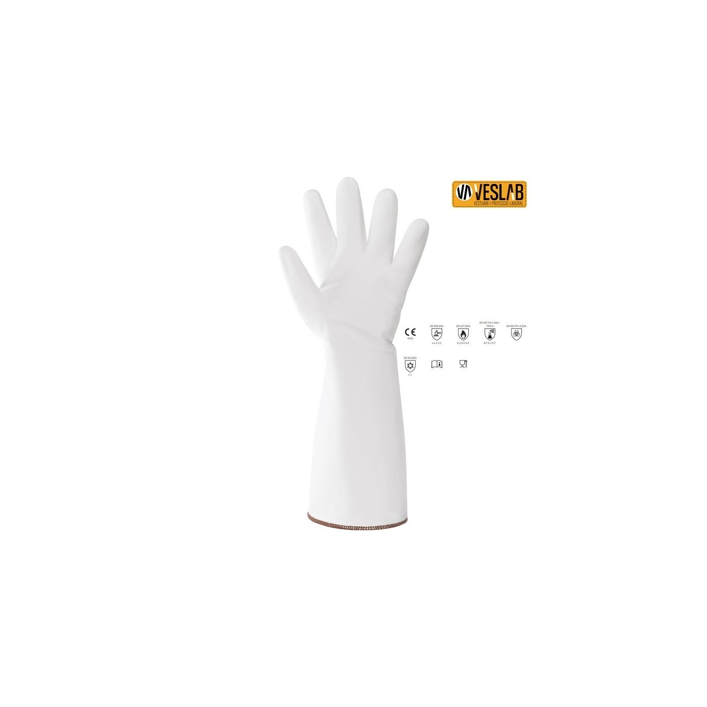 Conformes aux normes de sécurité alimentaire (Reg. CE Nr. 1935/2004 - D.M. 21/03/73), ces gants sont adaptés à une utilisation en milieu alimentaire, garantissant la protection nécessaire sans compromettre l'hygiène. Ses manches longues offrent une protection supplémentaire des avant-bras lors de la manipulation de plats chauds, assurant une couverture complète.