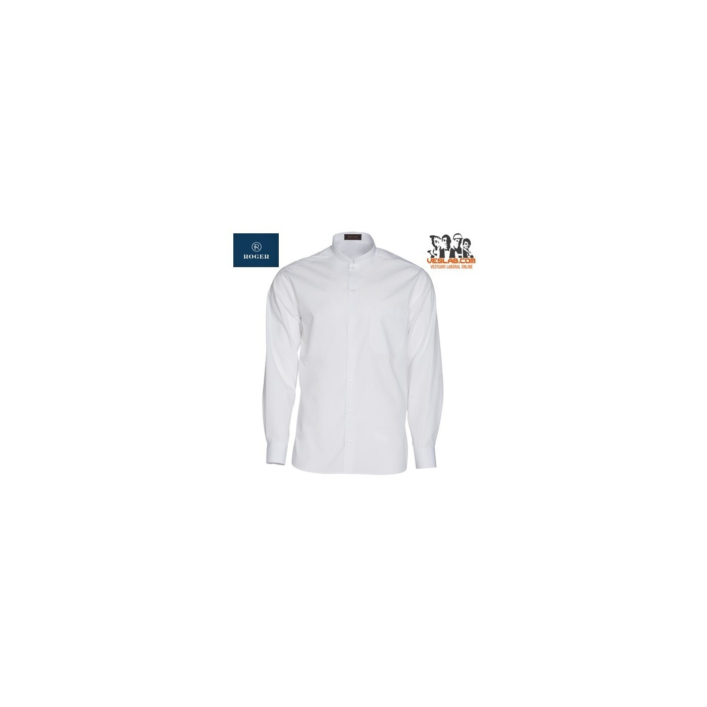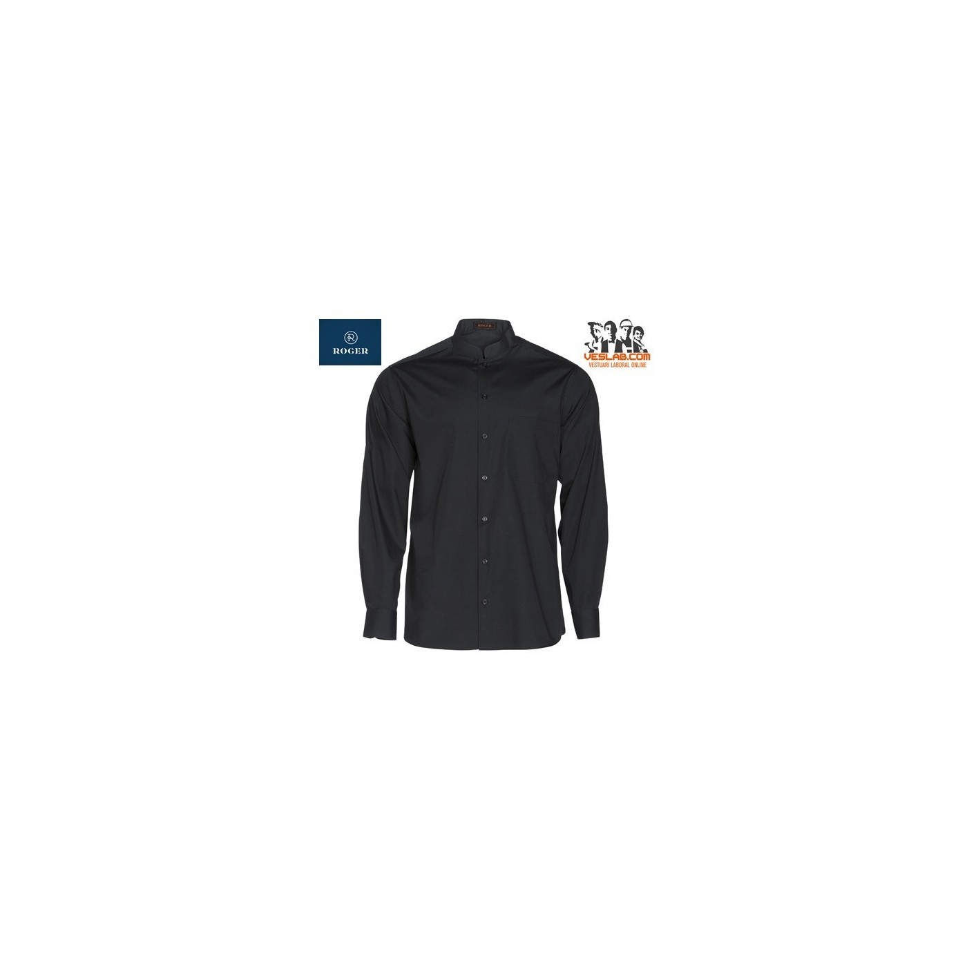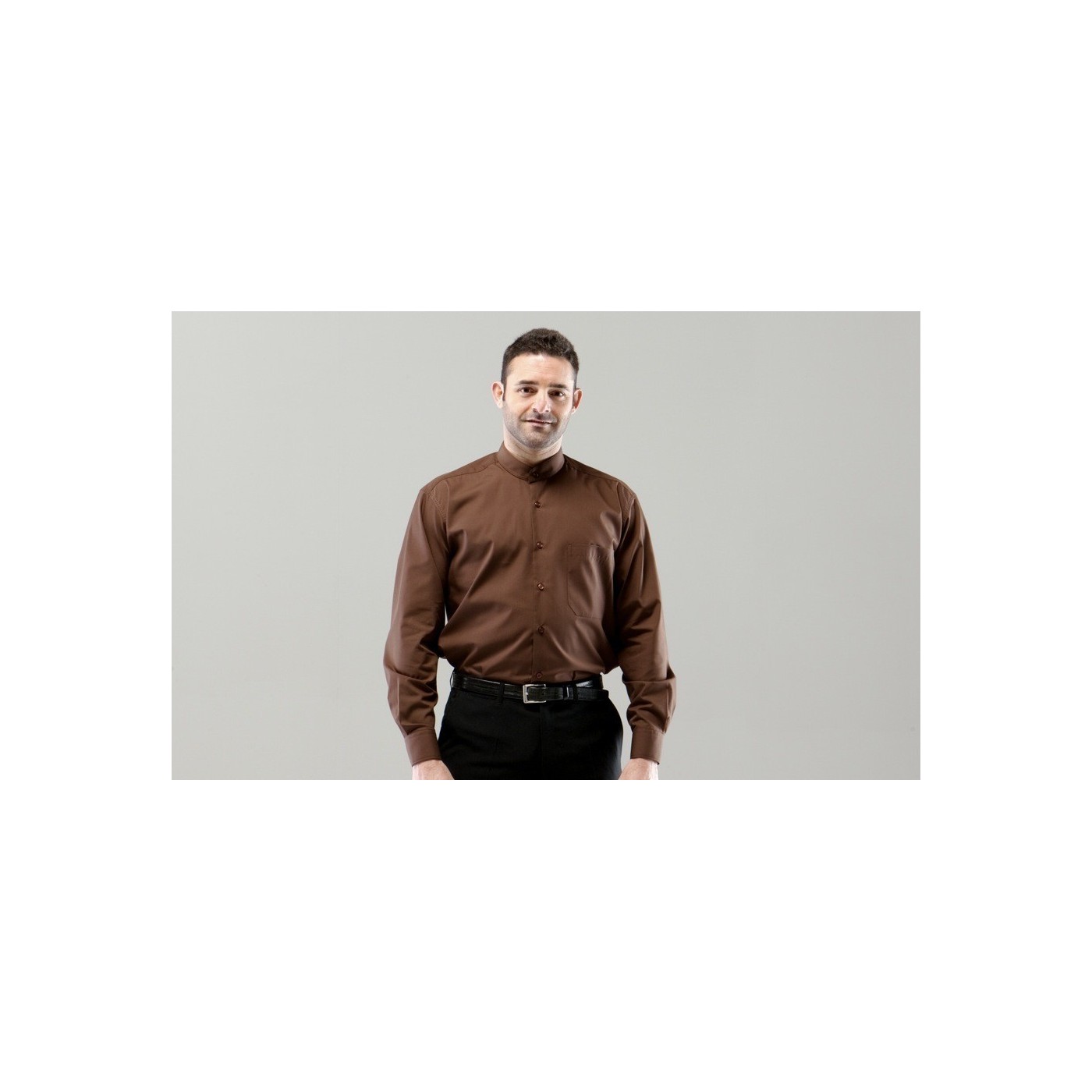 Waiter shirt avec le cou de mao hommes. Manche longue. Poche poitrine et plis sur les manches . 65 % polyester et 35 % coton