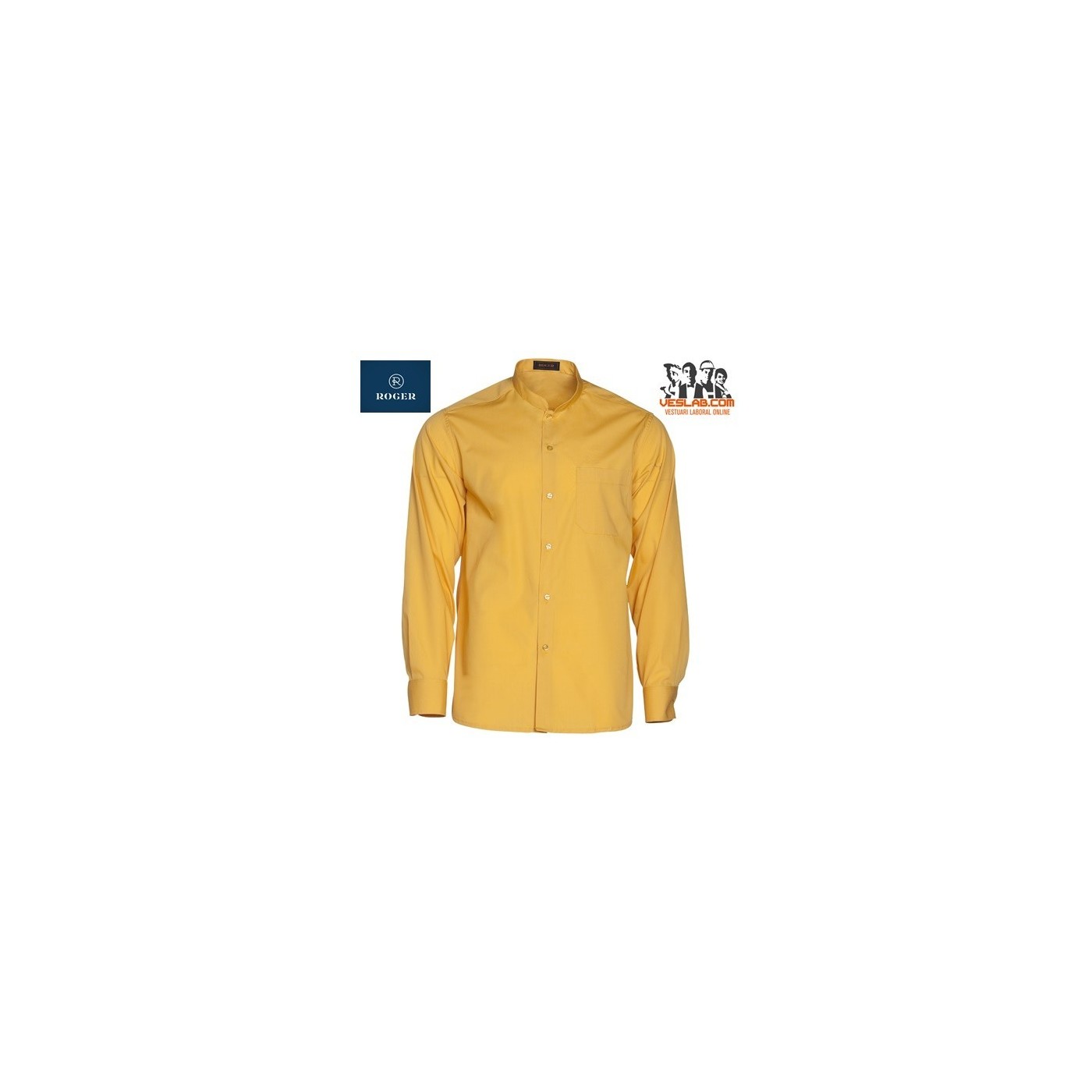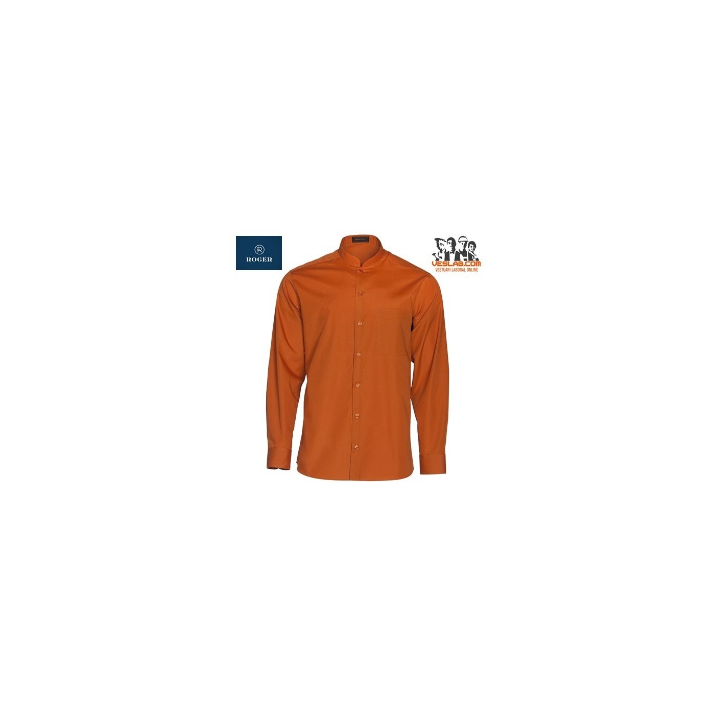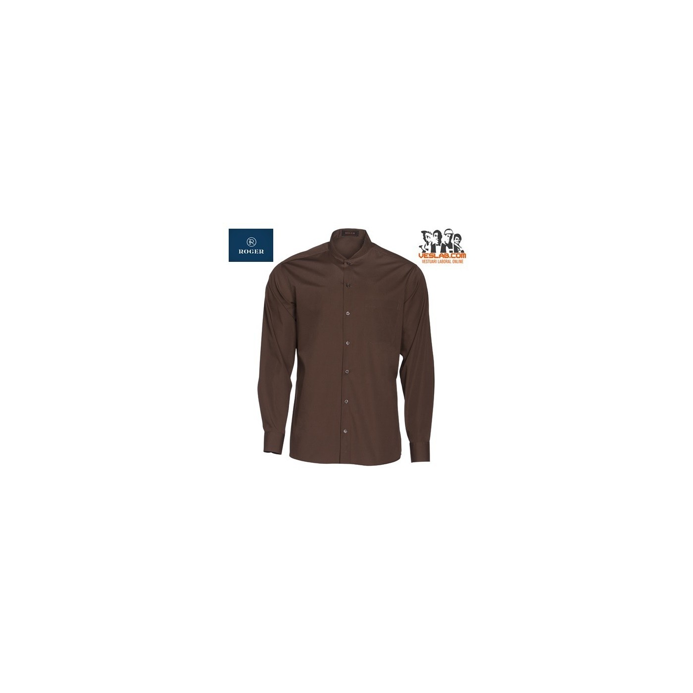 Waiter shirt avec le cou de mao hommes. Manche longue. Poche poitrine et plis sur les manches . 65 % polyester et 35 % coton