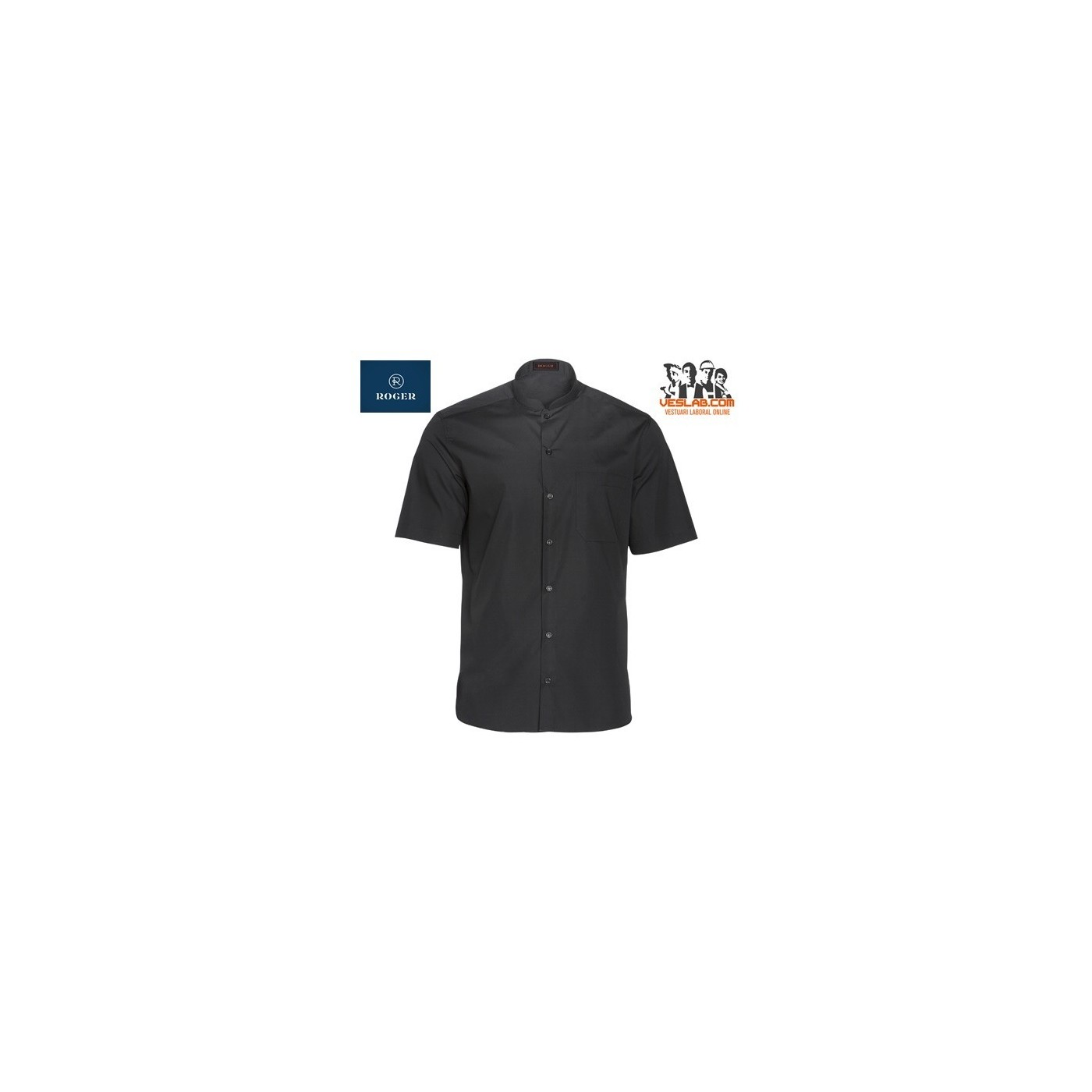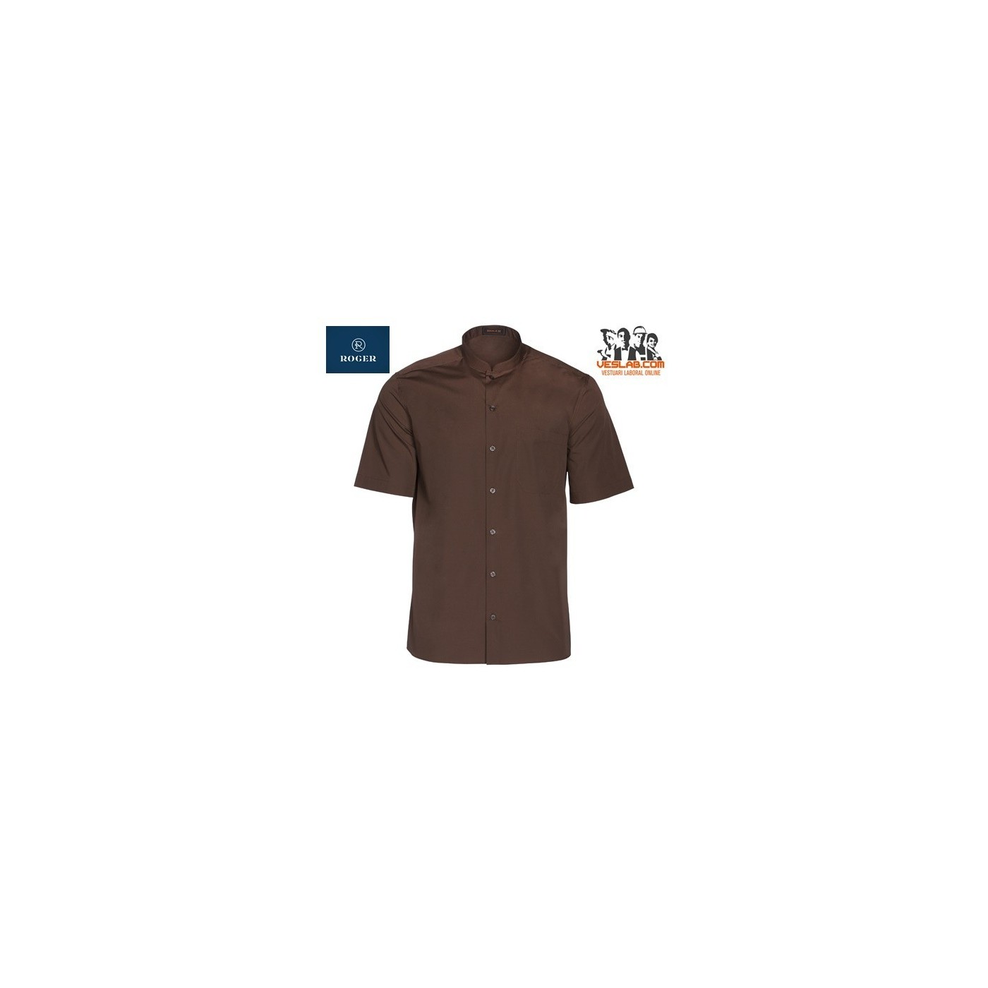 Waiter shirt avec le cou de mao hommes. Manches courtes. Poche poitrine et plis sur les manches . 65 % polyester et 35 % coton
