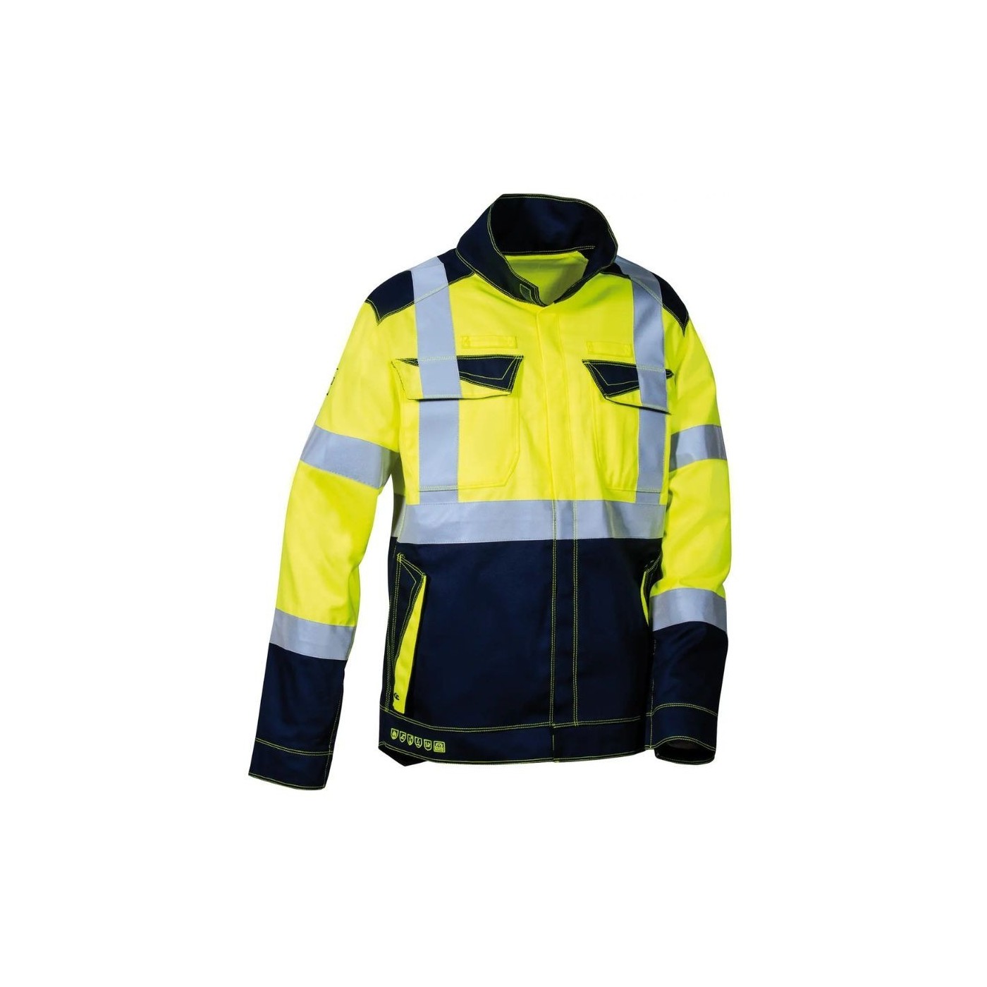 Normes respectées : EN ISO 13688, EN 1149-5, IEC 61482-2 APC 1, EN ISO 11612 A1 B1 C1 F1, EN ISO 11611 CLASSE 1 A1, EN 20471 (3 X FONDU + CHARBONNAGE / 2 X FONDU + ÉVASEMENT).