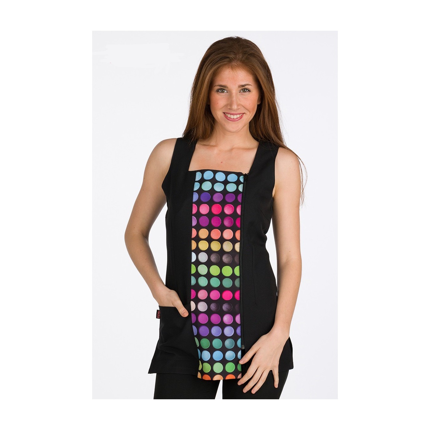 Veste avec pince poitrine et encolure carrée, centre avant imprimé, fermeture à glissière sur le côté, et une poche, fentes latérales.