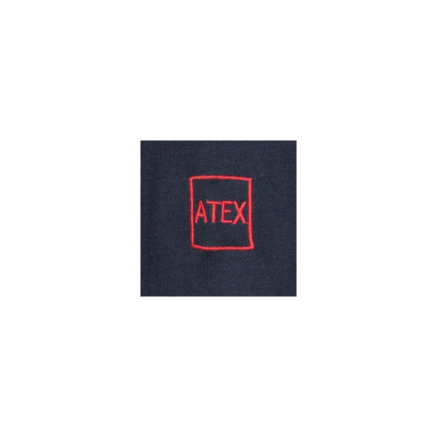 2 poches avant avec velcro, ouverture rapide avec bouton pression, broderie "ATEX" sur la manche droite, pictogrammes brodés sur la manche gauche, poignets réglables par velcro, recommandé pour les zones ATEX