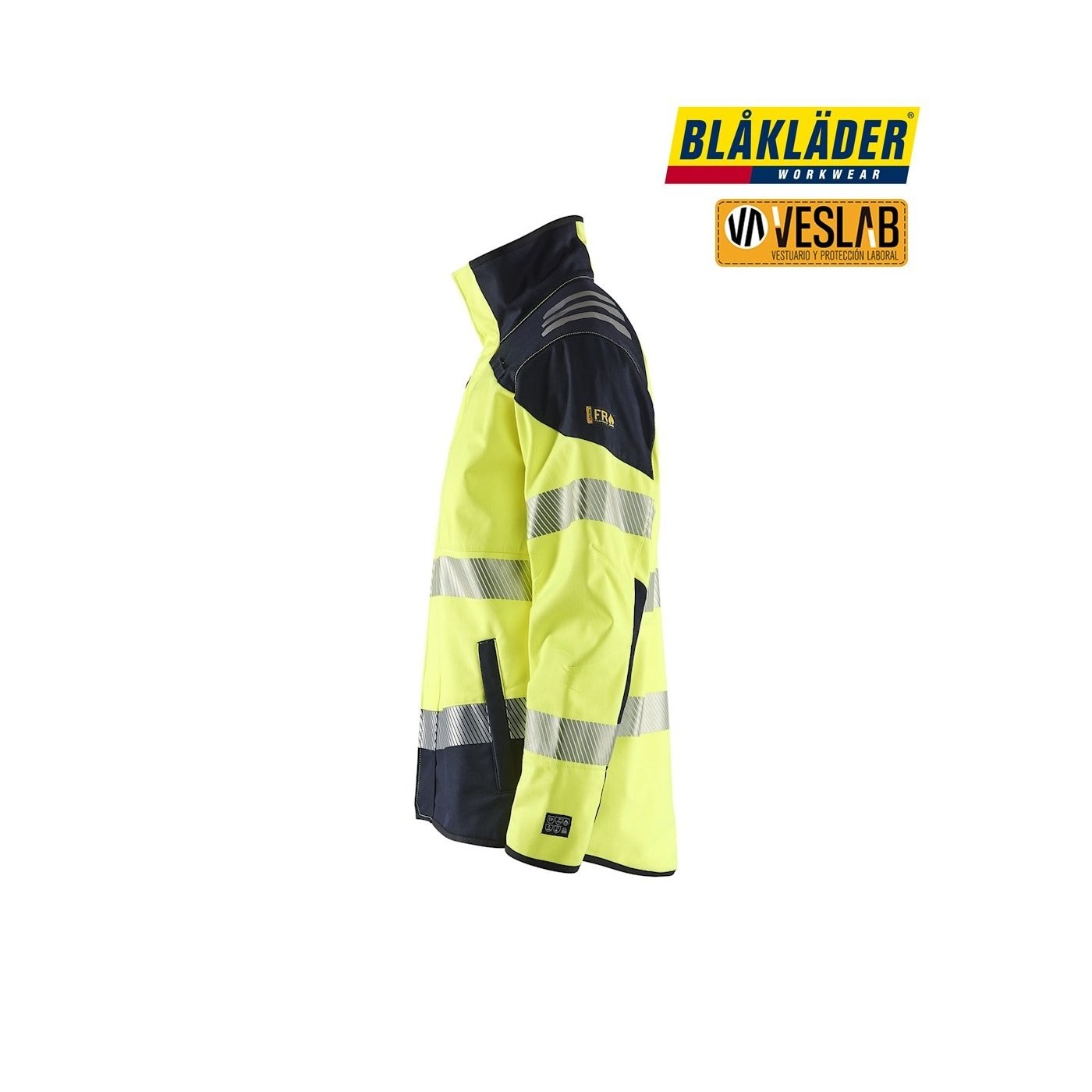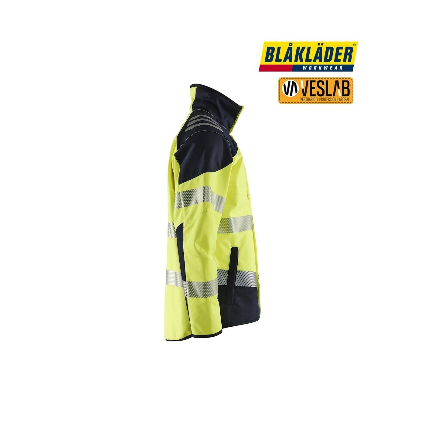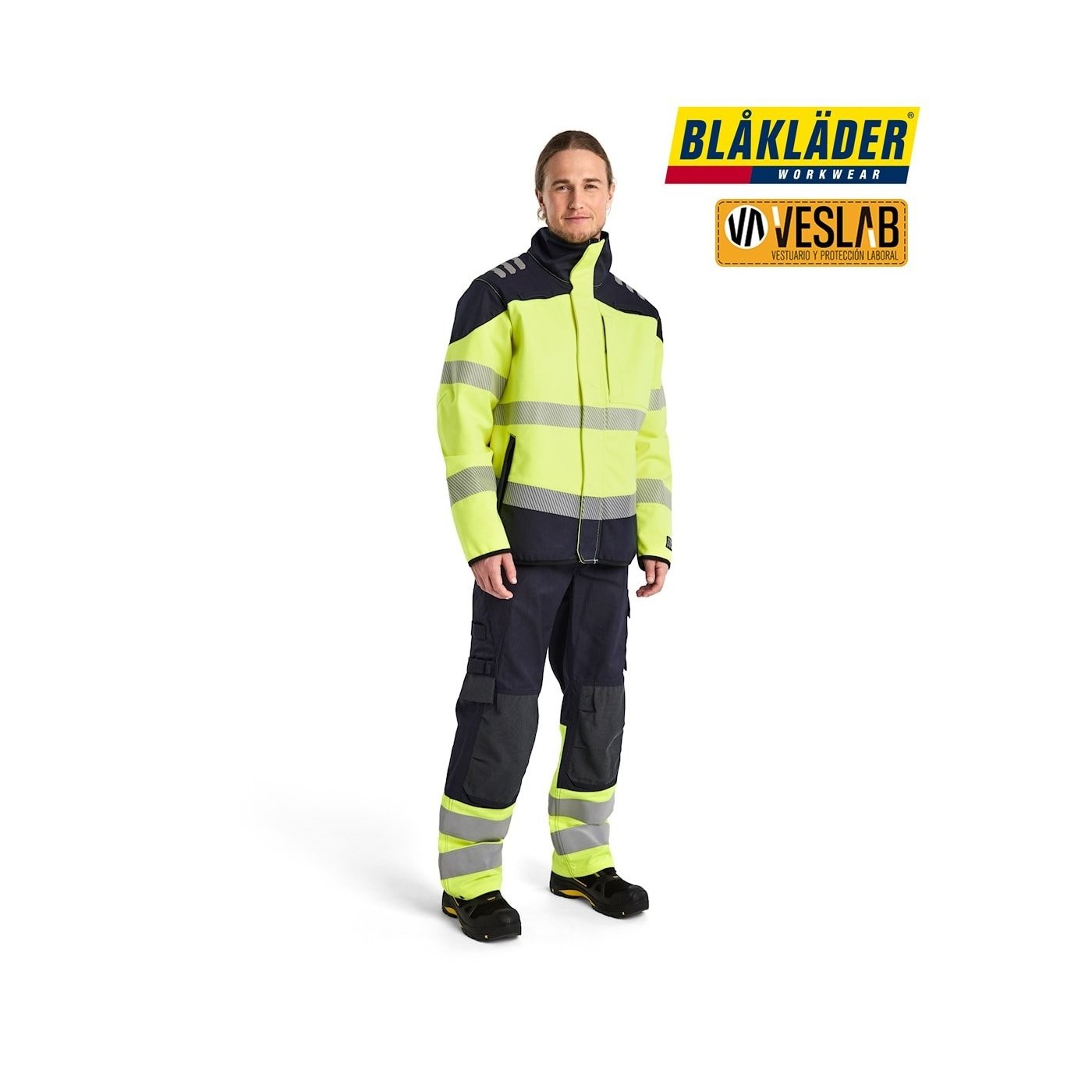 High visibility, inherently flame retardant, metal and polyester free softshell jacket. This wind and water resistant jacket is made from a softshell material and has excellent breathability. It also has a long back, and pre-folded sleeves and cuffs that improve its already excellent comfort. The jacket is equipped with gas loops, which are two rings where gas detectors and oximeters are hung. As a result, the softshell jacket is particularly useful, for example, in petrochemical environments or in the oil and gas industry.